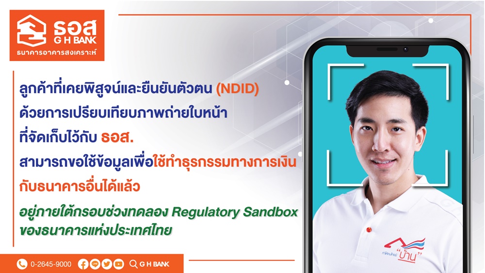 โดยจะช่วยให้ลูกค้าที่เปิดบัญชีเงินฝากออมทรัพย์กับธนาคารอาคารสงเคราะห์ และมีการพิสูจน์และยืนยันตัวตนด้วยการเปรียบเทียบภาพถ่ายใบหน้าที่เคยจัดเก็บไว้กับธนาคารอาคารสงเคราะห์ สามารถแสดงความจำนงขอใช้ข้อมูลที่เคยยืนยันตัวตนกับธนาคารอาคารสงเคราะห์ เพื่อนำไปใช้กับธนาคารอื่นที่ลูกค้าประสงค์จะทำธุรกรรมทางการเงินได้ตั้งแต่วันนี้เป็นต้นไป และให้ลูกค้าประชาชนสามารถเข้าถึงบริการทางการเงินได้สะดวก รวดเร็ว และปลอดภัยมากขึ้นผ่านช่องทางดิจิทัล โดยไม่ต้องเดินทางไปที่สาขาธนาคารภายใต้สถานการณ์ป้องกัน ความเสี่ยงอันเกิดจากเชื้อไวรัส COVID-19 ทั้งนี้ ลูกค้าสามารถศึกษาขั้นตอนการเปิดบัญชีเงินฝากออมทรัพย์ผ่าน GHB ALL และการพิสูจน์และการยืนยันตัวตนแบบง่าย ๆ และรวดเร็วได้ที่เว็บไซต์ของธนาคารอาคารสงเคราะห์ www.ghbank.co.th หรือ สอบถามข้อมูลเพิ่มเติมติดต่อ ศูนย์ลูกค้าสัมพันธ์ ธอส. โทร. 0-2645-9000