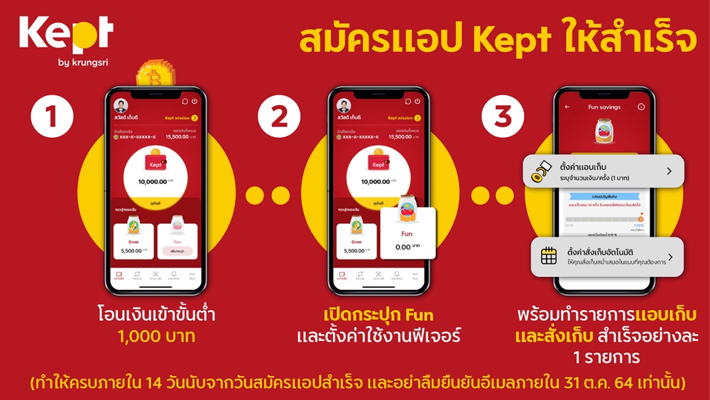 Kept by krungsri เอาใจผู้รักการออม ขยายเวลาจัดกิจกรรมพิชิตภารกิจเงินออม จากกระแสตอบรับอย่างดีต่อการทำภารกิจเก็บออมแบบสนุกยิ่งขึ้นผ่านฟีเจอร์เก็บเงินของกระปุก Fun ในแอป Kept จึงขยายเวลาแคมเปญให้ลูกค้าได้มีโอกาสร่วมกิจกรรม และมีประสบการณ์ลองใช้ฟีเจอร์ช่วยเก็บเงินให้อัตโนมัติตามไลฟ์สไตล์ของตน ทั้งแบบใช้จ่ายไปเก็บไป หรือเก็บสม่ำเสมออย่างมีวินัย