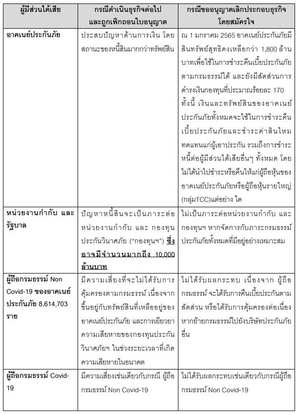 2)ผู้ถือหุ้นรายใหญ่ของบริษัทฯ ให้การสนับสนุนด้านการเงินแก่ ไทยประกันภัย ซึ่งนำไปชำระเป็นค่าสินไหมทดแทนจากการเคลมประกัน COVID-19 ของลูกค้าผู้ถือกรรมธรรม์ของทั้งไทยประกันภัย และบริษัท อาคเนย์ ประกันภัย จำกัด (มหาชน) (“อาคเนย์ประกันภัย”)[1] เป็นเงินจำนวน 9,900 ล้านบาท