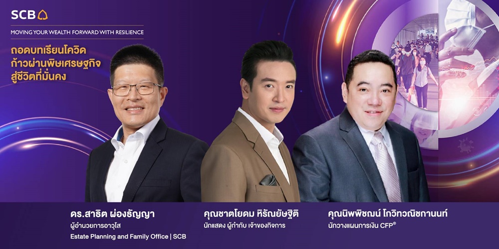 ธนาคารไทยพาณิชย์ จัดสัมมนาออนไลน์ ให้กับลูกค้ากลุ่ม Wealth ในหัวข้อ “ถอดบทเรียนโควิดก้าวผ่านพิษเศรษฐกิจสู่ชีวิตที่มั่นคง” โดยมี ดร. สาธิต ผ่องธัญญา ผู้อำนวยการอาวุโส Estate Planning and Family office ธนาคารไทยพาณิชย์ นายชาตโยดม หิรัณยัษฐิติ นักแสดง ผู้กำกับและเจ้าของกิจการ และนายนิพพิชฌน์ โกวิทวณิชกานนท์ นักวางแผนการเงิน CFP® เพื่อเป็นกลยุทธ์และแนวทางให้กับลูกค้าในการวางแผนการเงินและบริหารทรัพย์สินให้สามารถก้าวผ่านวิกฤติต่างๆไปได้อย่างมั่นคง จากการถอดบทเรียนของโควิด-19