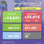 ศบค.รายงานยอดผู้ติดเชื้อโควิด-19 รายใหม่วันนี้ (26 ก.พ.) รวม 25,615 ราย จำแนกเป็น