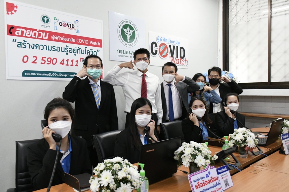 ทั้งนี้ สายด่วนผู้พิทักษ์อนามัย COVID Watch 02-590-4111 มีเจ้าหน้าที่รับสายทุกวัน ตั้งแต่เวลา 07.30-20.30 น. นอกจากนี้ ยังมีเพจเฟซบุ๊ค COVID Watch เพื่อให้คำปรึกษา อีกช่องทางหนึ่ง โดยเฉพาะเมื่อนอกเวลา จะมีการรับฝากข้อความเพื่อติดต่อกลับ