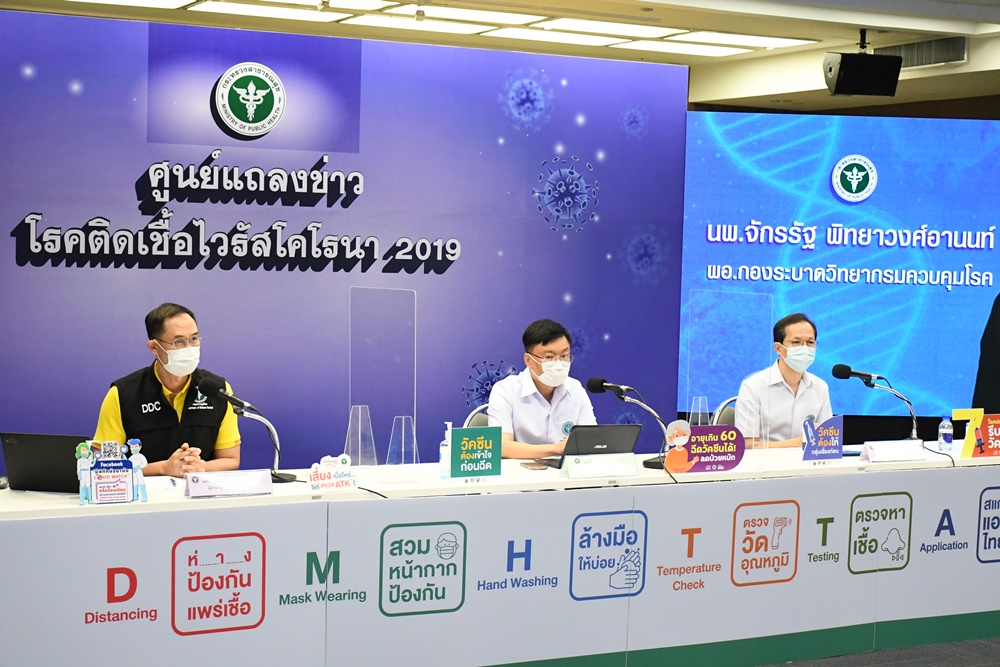 ที่ศูนย์แถลงข่าวสถานการณ์โรคติดเชื้อไวรัสโคโรนา 2019 กระทรวงสาธารณสุข จ.นนทบุรี นพ.โสภณ เอี่ยมศิริถาวร รองอธิบดีกรมควบคุมโรค พร้อมด้วย นพ.ณัฐพงศ์ วงศ์วิวัฒน์ รองอธิบดีกรมการแพทย์ และ นพ.จักรรัฐ พิทยาวงศ์อานนท์ ผู้อำนวยการกองระบาดวิทยา กรมควบคุมโรค แถลงข่าวสถานการณ์โควิด 19 การรับวัคซีนเข็มกระตุ้น และแนวทางการดูแลรักษา