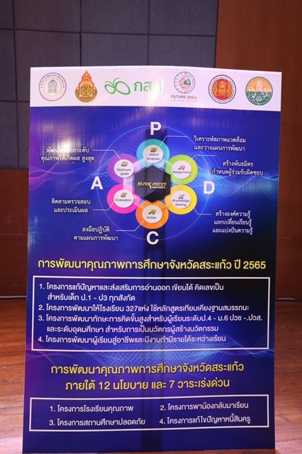 ขณะที่ นายปริญญา โพธิสัตย์ ผู้ว่าราชการจังหวัดสระแก้ว กล่าวว่า จังหวัดสระแก้วได้มีการดําเนินงานพัฒนาคุณภาพการศึกษา ในรูปแบบของคณะกรรมการและมีการวางแผนร่วมกันในการหาแนวทางในการพัฒนาคุณภาพการศึกษาจังหวัดสระแก้ว โดยร่วมกันออกแบบแนว ทางการพัฒนาคุณภาพการศึกษาจังหวัดสระแก้วในรูปแบบ SAKAEO MODEL เป็นแนวทาง การพัฒนา 6 ขั้นตอน โดยทุกขั้นตอนใช้กระบวนการ PDCA