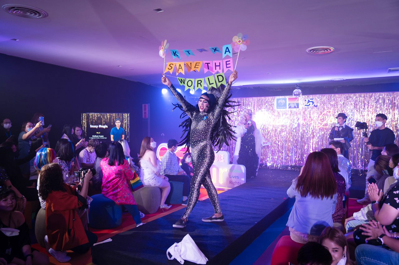 บมจ.กรุงไทย-แอกซ่า ประกันชีวิต นำโดยคุณแซลลี่ โอฮาร่า ประธานเจ้าหน้าที่บริหาร (คนกลาง) และ คุณบุปผาวดี โอวรารินท์ ประธานเจ้าหน้าที่บริหาร ฝ่ายทรัพยากรบุคคลและภาพลักษณ์องค์กรและการสื่อสารองค์กร (คนที่ 6 จากขวา) จัดงาน “Pride for Good” ซึ่งเป็นกิจกรรมที่รวมประสานระหว่างกิจกรรม Week for Good (สัปดาห์แห่งการทำความดี) และ Pride Month เข้าด้วยกัน โดยเป็นการจัดกิจกรรมประกวด Drag Queen – Drag King ภายใต้ธีม Our Bodies Our Lives และ Our Rights เพื่อแสดงออกในความแตกต่างของทุกคนในทุกๆ เรื่อง ไม่ว่าจะเป็น อายุ เชื้อชาติ ศาสนา ความแตกต่างทางกายภาพ รวมถึงเพศสภาพ ซึ่งชุดแต่งกายของผู้เข้าประกวดออกแบบภายใต้ตามคอนเซ็ปต์ 3Rs ได้แก่ Reduce Reuse และ Recycle นอกจากนั้น ภายในงานได้รับเกียรติจากคุณแองเจเล่ อานัง ผู้ชนะการประกวด Thailand Drag – Season 2 มาร่วมแสดงโชว์สุดพิเศษ และเป็นหนึ่งในคณะกรรมการตัดสิน
