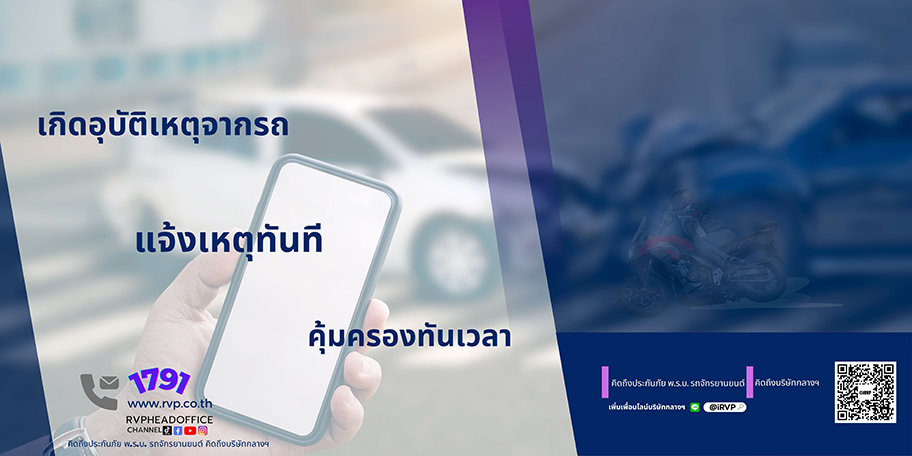 อุบัติเหตุทางถนนอาจเกิดขึ้นได้ตลอดเวลา สิ่งแรกหากเกิดอุบัติเหตุหรือพบอุบัติเหตุ "ต้องรีบแจ้งเหตุทันที" กับบริษัทประกันภัยที่ทำประกันภัยไว้ หากไม่ทราบให้โทรแจ้งเหตุที่บริษัท กลางคุ้มครองผู้ประสบภัยจากรถ จำกัด ที่ Call Center 1791 ตลอด 24 ชั่วโมง ซึ่งจะมีเจ้าหน้าที่คอยช่วยเหลือประสานงานติดต่อบริษัทประกันภัยให้ทราบ