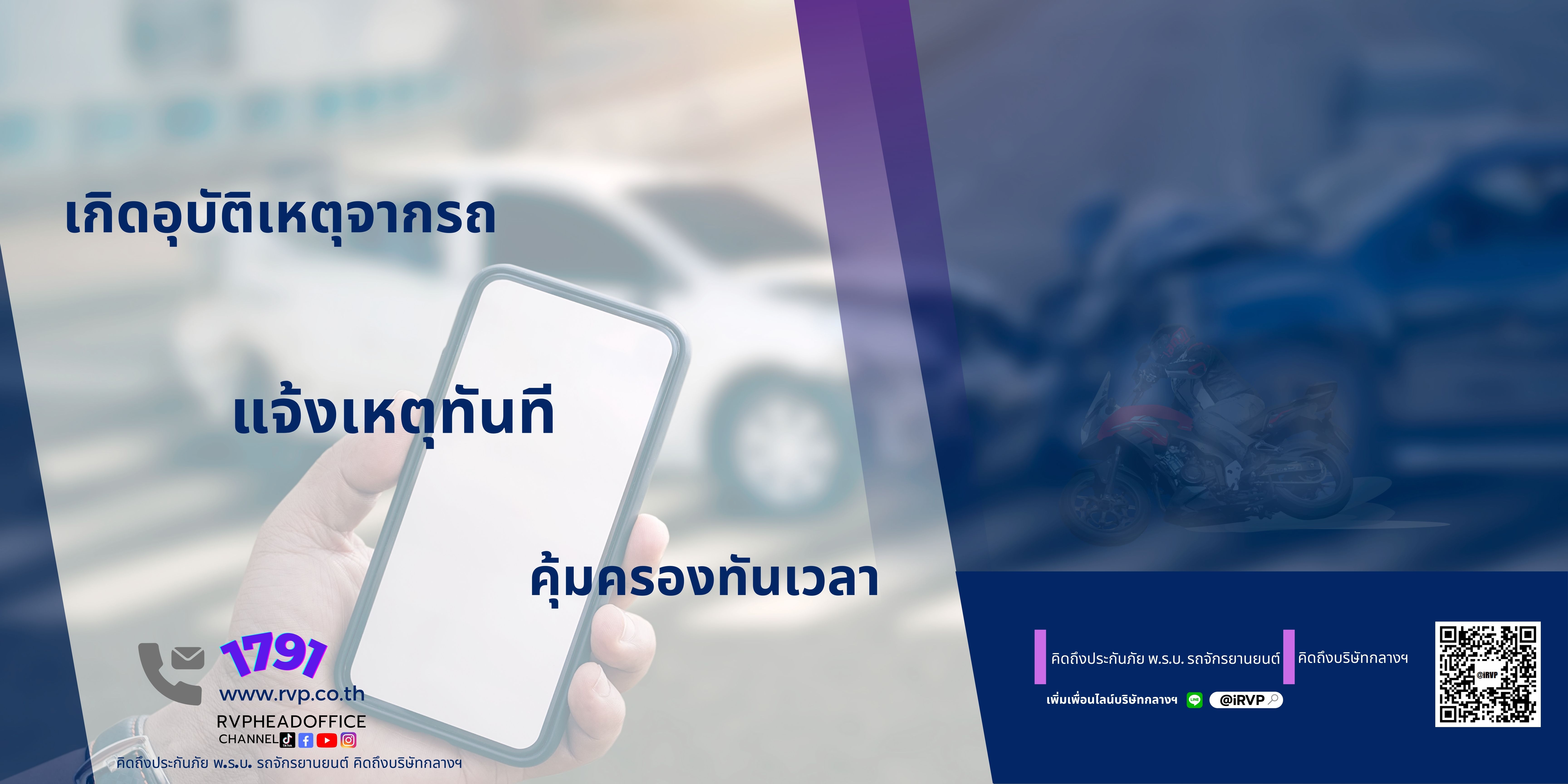 ดังนั้น เจ้าของรถทุกคันอย่าลืมจัดทำประกันภัย พ.ร.บ. เพื่อจะได้รับการเยียวยาตามกฎหมาย และสำหรับผู้ใช้รถจักรยานยนต์ ที่ทำประกันภัย พ.ร.บ. สามารถตรวจสอบความคุ้มครองได้ง่ายๆ เพียงแค่แอดไลน์ @iRVP มาเป็นเพื่อนกับบริษัทกลางฯ แล้วคลิกไปที่เมนู “พ.ร.บ.ของฉัน” กรอกชื่อ นามสกุล เลขบัตรประจำตัวประชาชน ระบบจะค้นข้อมูลให้ทราบ ไม่ว่าจะเป็นเลขที่กรมธรรม์, ระยะประกันภัยความคุ้มครองเริ่มต้นและสิ้นสุด และจำนวนวันคุ้มครองคงเหลือแจ้งไว้ด้วยครับ สะดวกสบาย ตรวจสอบได้ทุกที่ทุกเวลา ไม่ต้องกังวลเมื่อเกิดอุบัติเหตุ