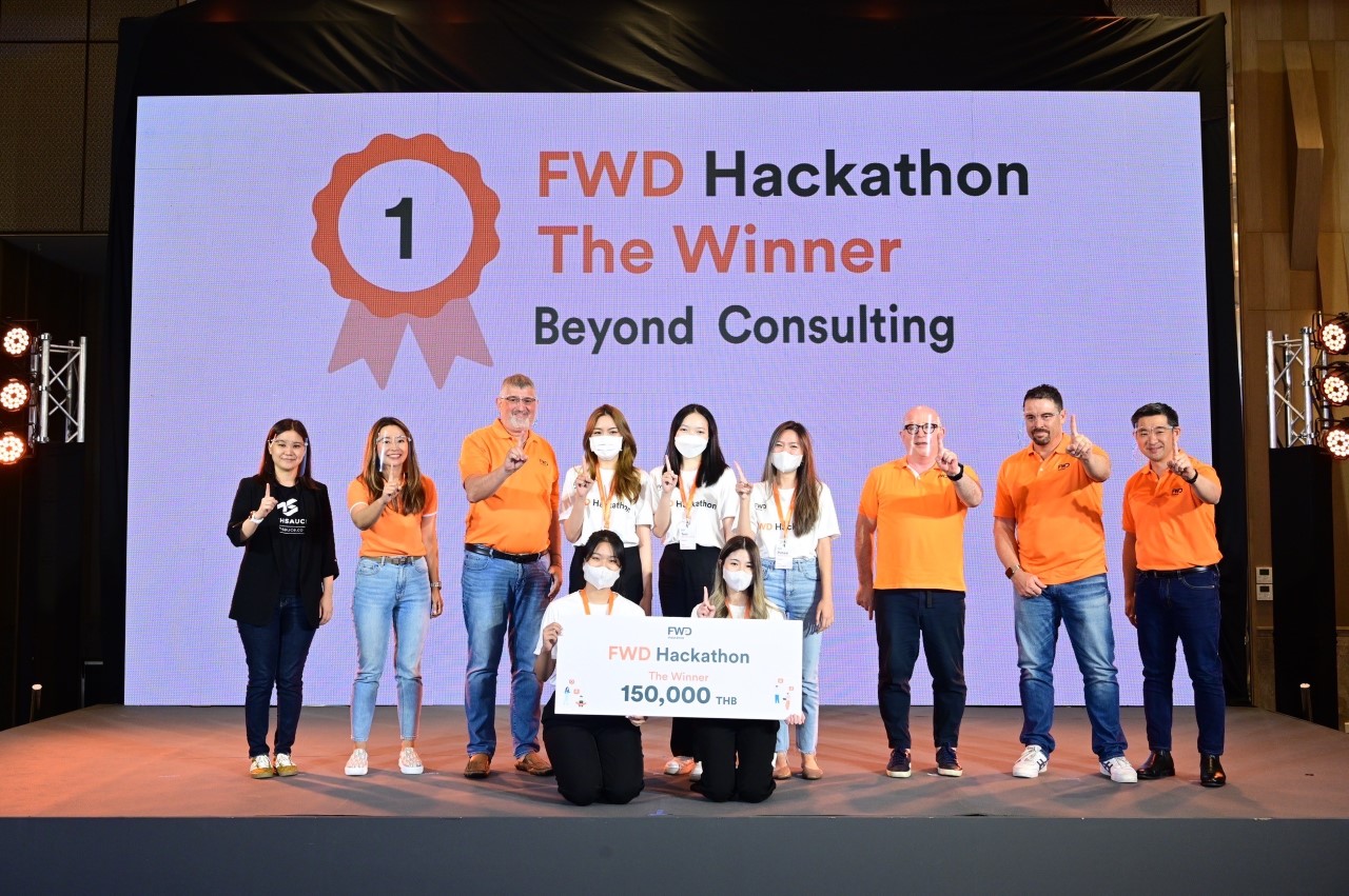 นายเดวิด โครูนิช (ที่ 3 จากซ้าย) ประธานเจ้าหน้าที่บริหาร บริษัท เอฟดับบลิวดี ประกันชีวิต จำกัด (มหาชน) (“เอฟดับบลิวดี ประกันชีวิต หรือ “FWD ประกันชีวิต”) พร้อมด้วยคณะกรรมการผู้ทรงคุณวุฒิ คุณมิหมี อรนุช เลิศสุวรรณกิจ (ที่ 1 จากซ้าย) ประธานเจ้าหน้าที่บริหาร และผู้ร่วมก่อตั้ง บริษัท เทคซอส มีเดีย จำกัด คุณศิริวรรณ ทองเหลือง (ที่ 2 จากซ้าย) ประธานเจ้าหน้าที่ สายงานบุคลากรและวัฒนธรรม เอฟดับบลิวดี ประกันชีวิต นาย ลี เมอร์ฟี (ที่ 3 จากขวา) (Group Chief Human Resources Officer) นาย ทรอย บาร์นเนส (ที่ 2 จากขวา) (Group Chief Transformation Officer) และ นาย มาร์แชล คิม (ที่ 1 จากขวา) (Group Head of Digital Platforms) เอฟดับบลิวดี ประกันชีวิต สำนักงานใหญ่ต่างประเทศ มอบรางวัลชนะเลิศการแข่งขัน “FWD Hackathon” ให้แก่ทีม Beyond Consulting จากมหาวิทยาลัยธรรมศาสตร์ และจุฬาลงกรณ์มหาวิทยาลัย โดยรับรางวัลเงินสดมูลค่า 150,000 บาท จากการนำเสนอผลงานเมื่อวันที่ 23 - 24 กรกฎาคม 2565 ที่ผ่านมา ณ โรงแรมอวานี พลัส หัวหิน รีสอร์ท