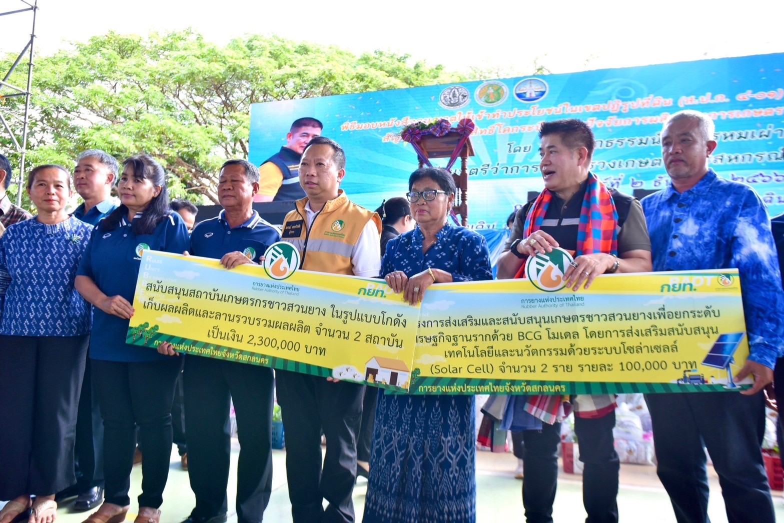 ร้อยเอกธรรมนัส พรหมเผ่า รัฐมนตรีว่าการกระทรวงเกษตรและสหกรณ์ พร้อมด้วย นายณกรณ์ ตรรกวิรพัท ผู้ว่าการการยางแห่งประเทศไทย นายสุขทัศน์ ต่างวิริยกุล รองผู้ว่าการ ด้านปฏิบัติการ และผู้บริหารการยางแห่งประเทศไทย (กยท.) ลงพื้นที่ จ.สกลนคร และ จ.หนองคาย มอบเงินทุนสนับสนุนจากกองทุนฯ มาตรา 49(3) แก่เกษตรกรและสถาบันเกษตรกรชาวสวนยาง ยกระดับเศรษฐกิจฐานรากด้วย BCG โมเดล ควบคู่กับการจัดการสวนยางในรูปแบบสวนยางยั่งยืน