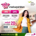 โดยพิเศษสุดสำหรับลูกค้า AIS Serenade ที่ซื้อประกันโครงการ “Health จุใจ IPD+OPD” ผ่านช่องทางออนไลน์ www.add-digital.co.th/life/healthjoojai ซื้อได้ตลอด 24 ชั่วโมง แล้วเลือกชำระเงินแบบรายปี และกรอกโค้ด “AISMTL20” รับส่วนลดทันที 20% ของค่าเบี้ยประกันภัยปีแรก เมื่อเลือกแพ็ค M, L หรือ XL โดยสิทธิพิเศษเริ่มตั้งแต่ 1 พฤศจิกายน - 30 ธันวาคม 2566