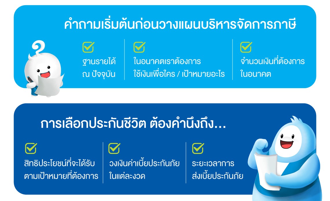 โดยสรุป การวางแผนลดหย่อนภาษีด้วยการทำประกันชีวิต นอกจากจะช่วยให้ผู้วางแผนสามารถบรรลุเป้าหมายทางการเงินที่ต้องการ ลดภาระทางภาษี ช่วยสร้างวินัยทางการเงิน แล้วยังมีอีกเป้าหมายที่สำคัญ คือการสร้างความคุ้มครองและดูแลตัวเองและคนที่รักให้อุ่นใจในทุกช่วงเวลานั่นเอง