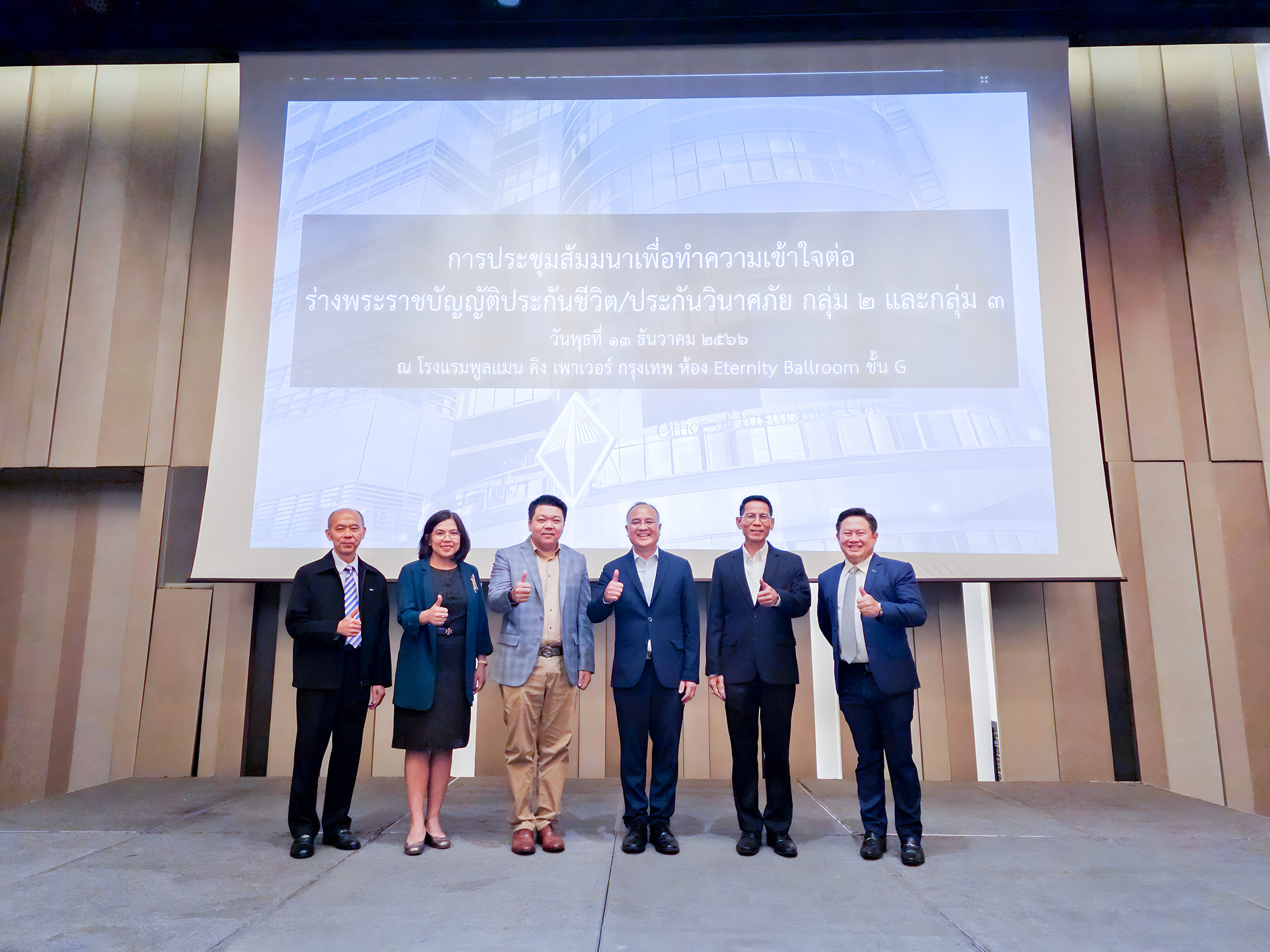 “เวทีการประชุมสัมมนาในครั้งนี้จัดขึ้นเพื่อให้ภาคธุรกิจสามารถเตรียมความพร้อมในการปฏิบัติตามกฎหมายที่กำลังจะมีผลใช้บังคับในอนาคต และเพื่อสร้างความเข้าใจที่ตรงกันระหว่างภาคธุรกิจและหน่วยงานกำกับดูแลต่อหลักการของร่างพระราชบัญญัติประกันชีวิตและร่างพระราชบัญญัติประกันวินาศภัยทั้ง 2 กลุ่ม หากภาคธุรกิจมีข้อสงสัยรวมถึงข้อเสนอแนะใด ก็สามารถสอบถามและให้ข้อเสนอแนะแก่สำนักงาน คปภ. ได้ เพื่อที่สำนักงาน คปภ. จะได้รวบรวมเป็นข้อมูลไว้เพื่อประกอบการชี้แจงและปรับปรุงร่างกฎหมายทั้ง 2 กลุ่ม ในกระบวนการตรากฎหมายในลำดับถัดไป” เลขาธิการ คปภ. กล่าวในตอนท้าย