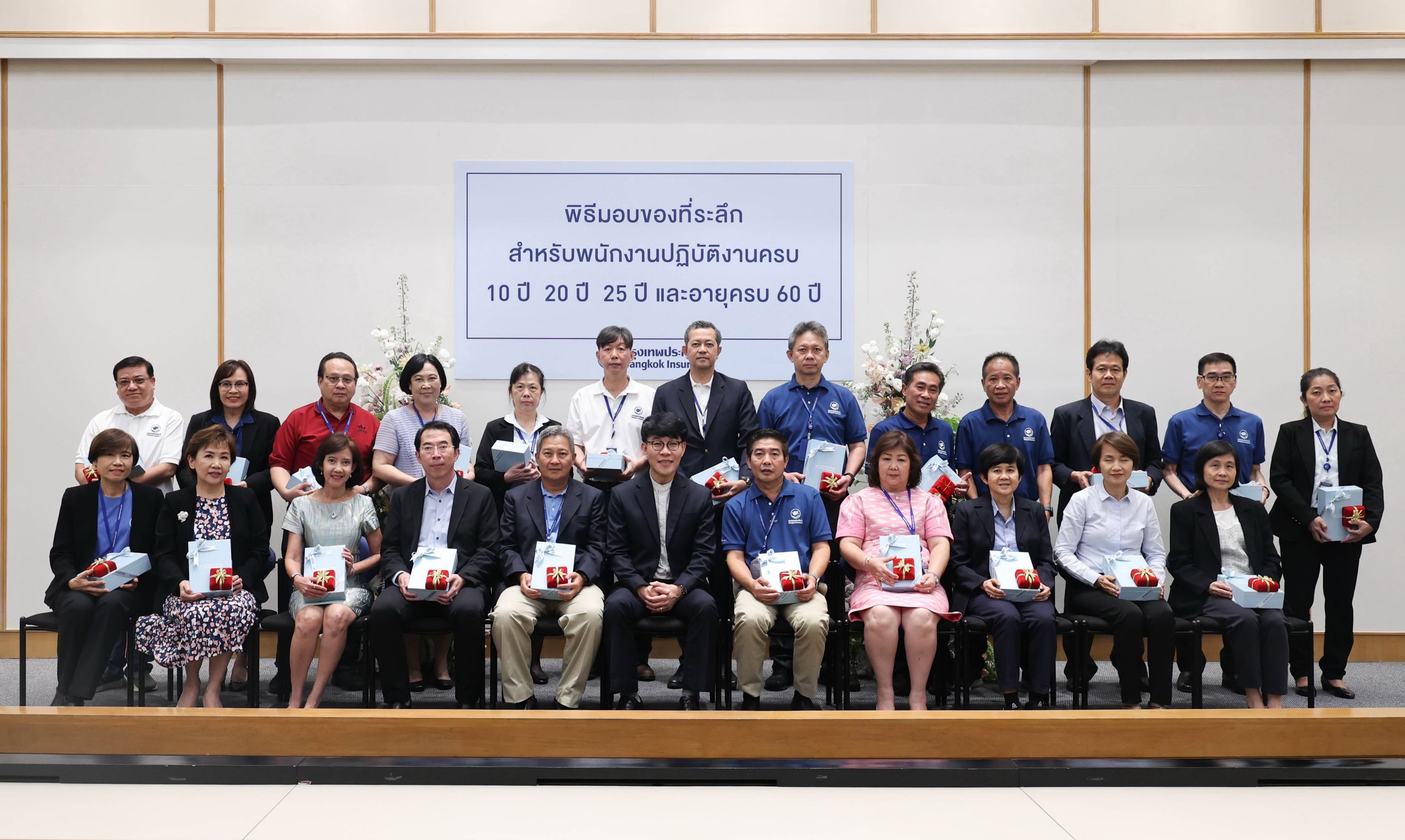 บริษัท กรุงเทพประกันภัย จำกัด (มหาชน) จัดพิธีมอบของที่ระลึกสำหรับพนักงานที่ปฏิบัติงานครบ 10 ปี 20 ปี 25 ปี และพนักงานอายุครบ 60 ปี โดยมีดร.อภิสิทธิ์ อนันตนาถรัตน ประธานคณะผู้บริหารและกรรมการผู้อำนวยการใหญ่ เป็นประธานในพิธีมอบของที่ระลึกให้แก่พนักงาน เพื่อเป็นเกียรติแห่งความภาคภูมิใจในความมุ่งมั่นและทุ่มเทต่อการปฏิบัติงานให้องค์กรอย่างเต็มที่ และเพื่อเป็นขวัญกำลังใจในการปฏิบัติงานพร้อมร่วมกันขับเคลื่อนองค์กรให้เติบโตอย่างมั่นคงและยั่งยืน ณ อาคารกรุงเทพประกันภัย สำนักงานใหญ่ เมื่อวันที่ 14 ธันวาคม 2566 ที่ผ่านมา