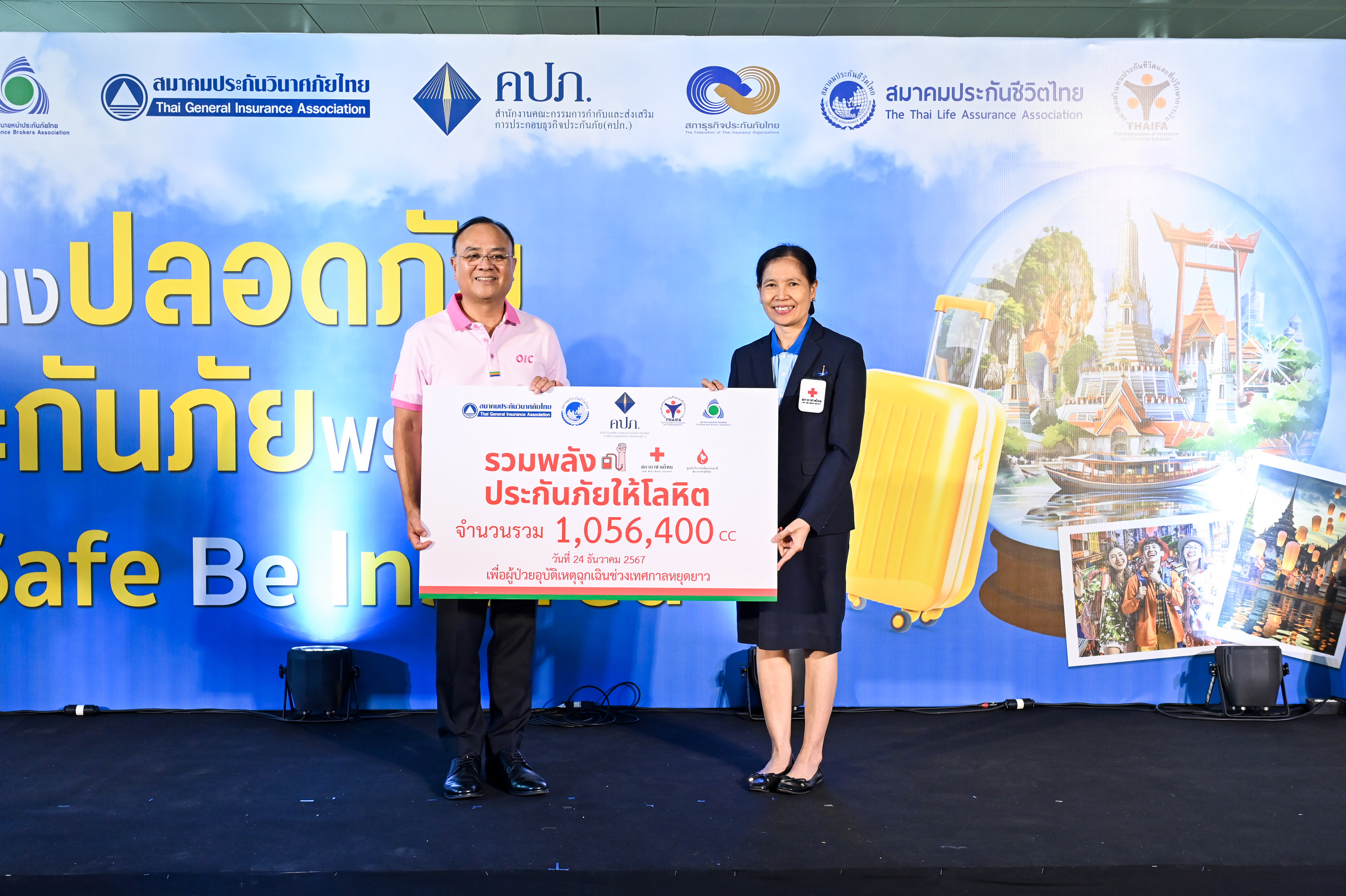 นอกจากนี้ สำนักงาน คปภ. และภาคธุรกิจประกันภัย ยังเล็งเห็นความสำคัญของทุกชีวิตที่มีความหมายจึงได้ส่งต่อความห่วงใยในโครงการ “รวมพลังประกันภัยให้โลหิต” โดยร่วมใจกันบริจาคโลหิตทั่วประเทศ มอบให้แก่สภากาชาดไทยเพื่อใช้สำรองโลหิตในการช่วยเหลือผู้ประสบเหตุกรณีฉุกเฉินช่วงเทศกาลหยุดยาว โดยสามารถรวบรวมโลหิตสำรองได้กว่า 1,056,400 ซีซี และยังให้มีการสาธิตการปฐมพยาบาลเบื้องต้น เพื่อการเอาชีวิตรอดในสถานการณ์ฉุกเฉิน ซึ่งได้รับความอนุเคราะห์จากมูลนิธิสยามรวมใจปู่อินทร์ มาร่วมถ่ายทอดองค์ความรู้ให้กับประชาชนในการช่วยเหลือตนเองและผู้อื่นเมื่อเกิดเหตุฉุกเฉิน ซึ่งถือเป็นหนึ่งในกระบวนการบริหารความเสี่ยงอีกทางหนึ่ง