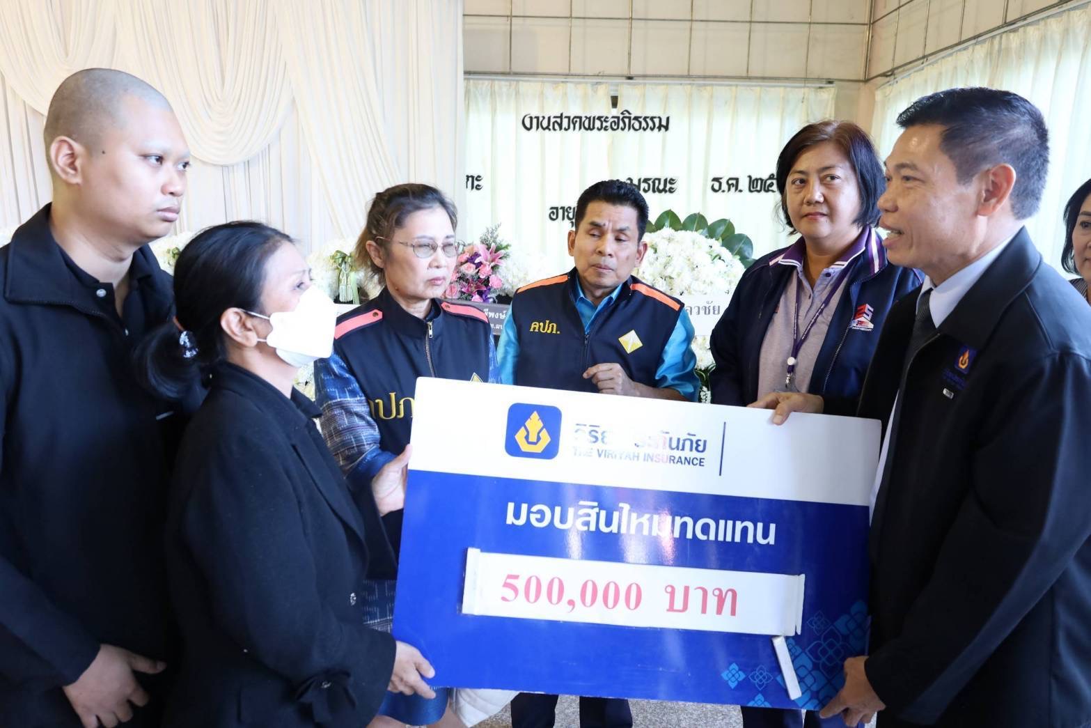 นายวารี กกขุนทด ผู้ช่วยผู้จัดการฝ่ายปฏิบัติการภาค 2 (ภาคตะวันออกเฉียงเหนือ) ด้านสาขา และนายปิยะ ชูช่วย ผู้จัดการศูนย์ปฏิบัติการสินไหมทดแทนนครราชสีมา บริษัท วิริยะประกันภัย จำกัด (มหาชน) เป็นผู้แทนมอบค่าสินไหมทดแทน จำนวน 500,000 บาท ตามสิทธิประโยชน์ที่ระบุไว้ในเงื่อนไขความคุ้มครองของกรมธรรม์ประกันภัยรถยนต์ภาคบังคับ (พ.ร.บ.) แก่ทายาทตามกฎหมายของ ร.ต.ท.วิมุตต์ แทนสุโพธิ์ รองสารวัตรจราจร สถานีตำรวจภูธรเมืองนครราชสีมา ซึ่งเป็นผู้เสียชีวิต จากกรณี รถยนต์หมายเลขทะเบียน ขง 2408 นครราชสีมา เกิดอุบัติเหตุชนประชาชน บริเวณหน้าโรงเรียนบ้านดอนขวาง ถนนเพชรมาตุคลา ตำบลหัวทะเล อำเภอเมือง จังหวัดนครราชสีมา เป็นเหตุให้มีผู้เสียชีวิตและได้รับบาดเจ็บหลายราย โดยมี นายไมตรี ชนูดหอม ผู้อำนวยการภาค สำนักงาน คปภ. ภาค 4 จังหวัดนครราชสีมา และนางสาวมณี ไวยภาษ ผู้อำนวยการสำนักงาน คปภ. จังหวัดนครราชสีมา ร่วมเป็นสักขีพยานในการมอบสินไหมทดแทนดังกล่าว