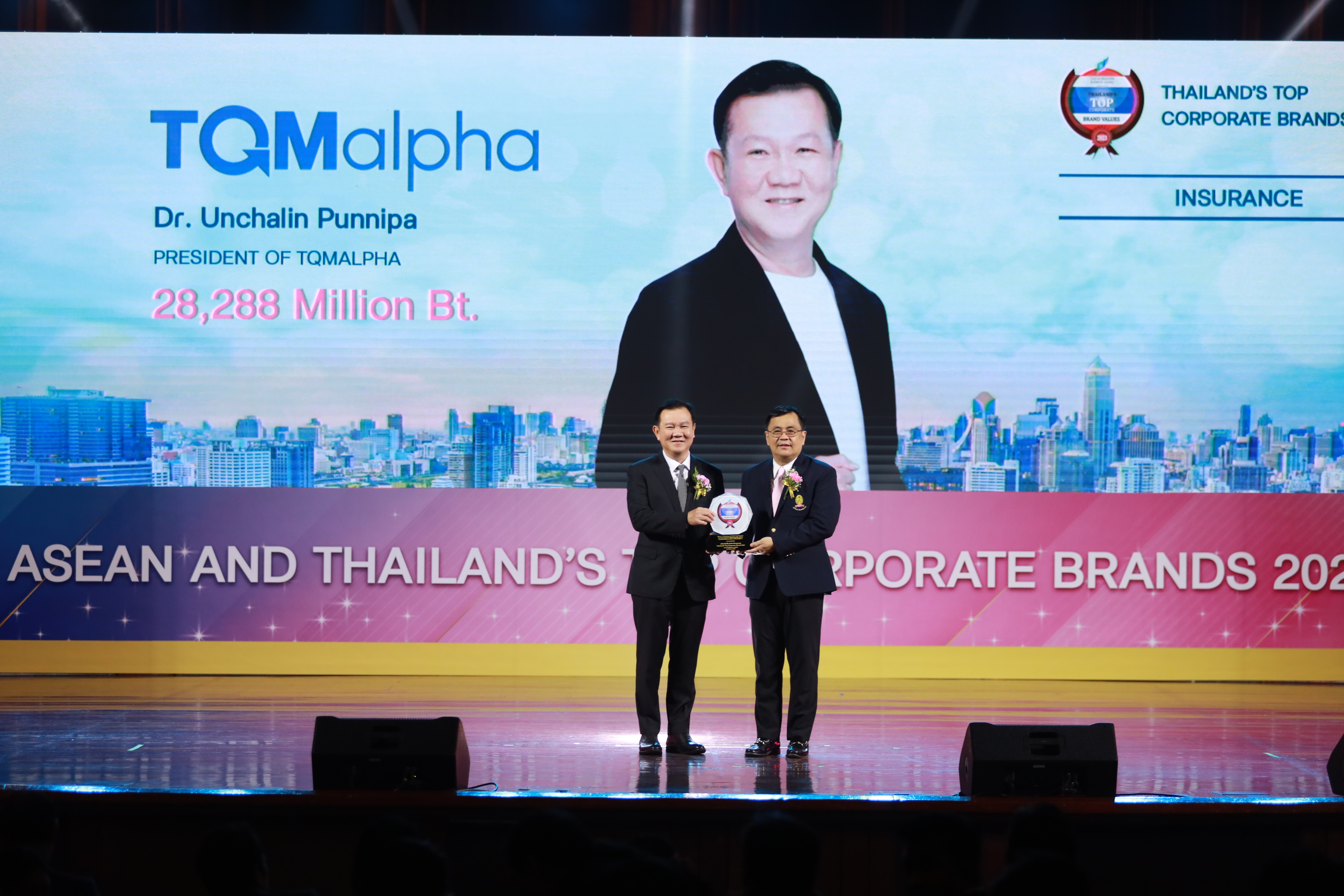 บริษัท ทีคิวเอ็ม อัลฟา จำกัด (มหาชน) หรือ TQMalpha ได้รับรางวัลในงาน 'Thailand's Top Corporate Brands 2023' มูลค่าแบรนด์องค์กรสูงสุดในไทย หมวดธุรกิจประกันภัยและประกันชีวิต ด้วยมูลค่าแบรนด์ 28,288 ล้านบาท ในงาน ASEAN and Thailand 's Top Corporate brand ครั้งที่ 14 TQMalpha ได้รับรางวัลต่อเนื่อง 3 ปีซ้อน งานในครั้งนี้ จัดโดยหลักสูตรปริญญาโท สาขาการจัดการแบรนด์และการตลาด คณะพาณิชยศาสตร์และการบัญชี จุฬาลงกรณ์มหาวิทยาลัย ร่วมกับตลาดหลักทรัพย์แห่งประเทศไทย โดยมี ดร.อัญชลิน พรรณนิภา ประธานกรรมการ TQMalpha เข้ารับรางวัลอันทรงเกียรติในครั้งนี้เมื่อวันที่ 23 มกราคม 2567 ณ หอประชุม จุฬาลงกรณ์มหาวิทยาลัย