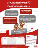 สุดท้าย “ประเมินความเสี่ยงอยู่ตลอดเวลา” เหตุการณ์ไม่คาดฝันที่จะกระทบกับการเงินของครอบครัวสามารถเกิดขึ้นได้ตลอดเวลา ดังนั้นคุณพ่อคุณแม่จำเป็นต้องประเมินความเสี่ยงอยู่เสมอ และควรวางแผนด้านการเงินให้เพียงพอเมื่อเกิดเหตุฉุกเฉิน นอกจากการออมและการลงทุนแล้ว ซึ่งอีกหนึ่งทางเลือกที่น่าสนใจคือการสร้างความมั่นคงด้วยการเพิ่มทุนในประกันชีวิต เป็นต้น