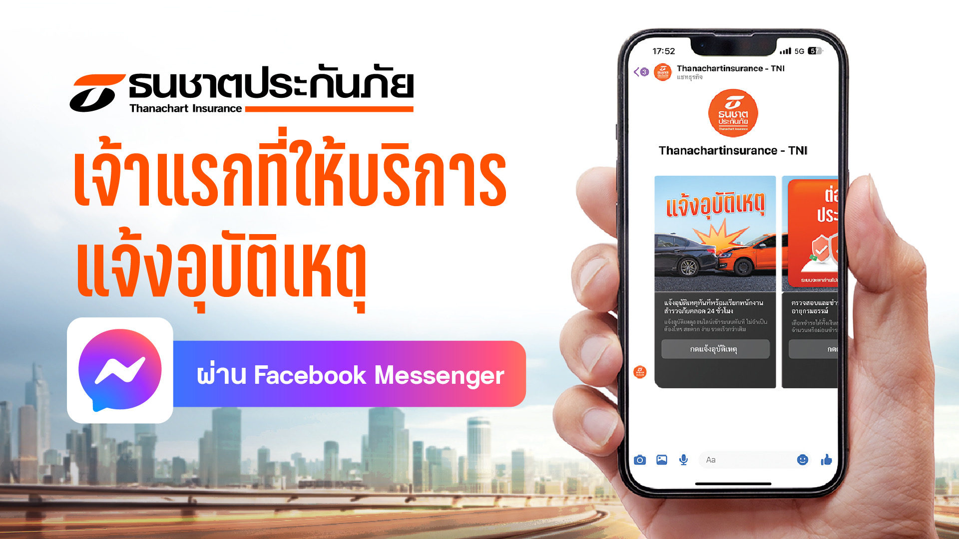 ธนชาตประกันภัย ยืนหนึ่งให้บริการบน Social Platform ประกันภัยเจ้าแรกที่เปิดใช้งานแจ้งอุบัติเหตผ่าน “Facebook Messenger” มีบริการครบทุกฟีเจอร์ทั้งแจ้งอุบัติเหตุ ซื้อ และต่อประกัน ใช้งานง่าย สะดวก รวดเร็ว ปลอดภัย แชทรับบริการออนไลน์ตลอด 24 ชั่วโมง