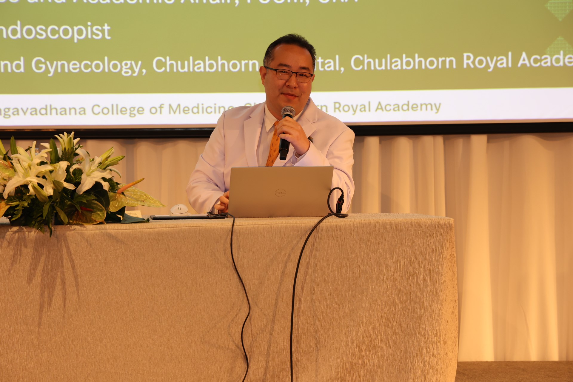ผศ.นพ.ณัฐวุฒิ กันตถาวร ผู้ช่วยคณบดีฝ่ายบริการวิชาการและสังคม วิทยาลัยแพทย์ศาสตร์ศรีสวางควัฒน แพทย์ผู้เชี่ยวชาญมะเร็งวิทยานรีเวชและการผ่าตัดผ่านกล้องทางนรีเวช โรงพยาบาลจุฬาภรณ์ ราชวิทยาลัยจุฬาภรณ์ บรรยายวิชาการ เรื่อง “CA CERVIX”