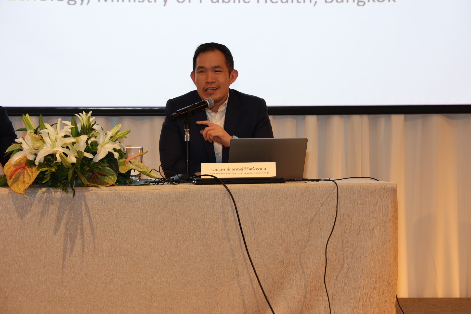 พ.ท.นพ.ณัฐวุฒิ โยธินอุปไมย นายแพทย์ (สบ3) กลุ่มงานนิติพยาธิ สถาบันนิติเวชวิทยา โรงพยาบาลตำรวจ บรรยายวิชาการ เรื่อง “แนวทางการพิจารณาการตายอย่างผิดธรรมชาติ”