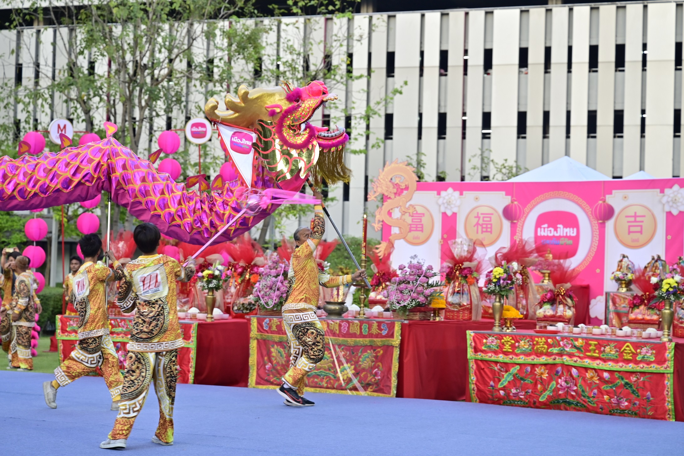 ทั้งนี้ ภายในงานเริ่มลำดับพิธีด้วยคณะผู้บริหารอัญเชิญองค์เทพมา ณ แท่นประทับ ถวายเครื่องสักการะพระโพธิสัตว์กวนอิม เทพเจ้ากวนอู และ 5 พญาเทพเจ้ามังกร ตามด้วยคณะผู้บริหาร ผู้มีเกียรติร่วมงาน และพนักงาน ร่วมสักการะองค์เทพ การแสดงเชิดมังกรชมพูและสิงโต ปิดท้ายด้วยคณะผู้บริหาร ผู้มีเกียรติ และพนักงานร่วมพิธีลอดใต้ท้องมังกรชมพู.