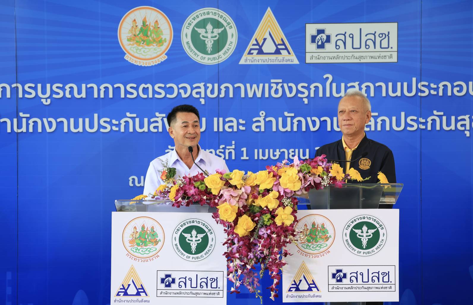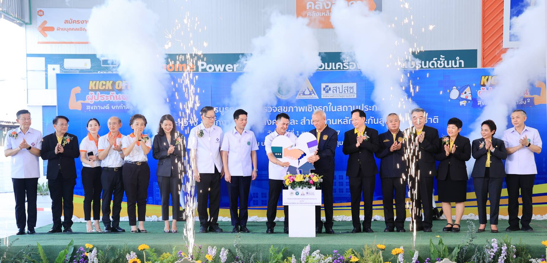 ด้าน นายบุญสงค์ ทัพชัยยุทธ์ เลขาธิการสำนักงานประกันสังคม กล่าวว่า KICK OFF เป็นก้าวสำคัญที่ตอกย้ำว่าผู้ประกันตนจะได้รับการดูแลด้านสุขภาพที่ครอบคลุม โดยไม่เสียค่าใช้จ่าย ทุก รพ. ทั่วประเทศ สถานประกอบการที่สนใจ สามารถดำเนินการประสานสถานพยาบาลที่มีความพร้อมในการให้บริการตรวจสุขภาพ ที่ขึ้นทะเบียนเรื่องส่งเสริมสุขภาพของสำนักงานประกันสังคม และสำนักงานประกันสุขภาพแห่งชาติ ณ ปัจจุบันมีสถานพยาบาลที่เข้าร่วมโครงการฯ รวม 213 แห่ง แบ่งเป็น สถานพยาบาลรัฐ 165 แห่ง เอกชน 48 แห่ง สามารถตรวจสอบรายชื่อสถานพยาบาลที่เข้าร่วมโครงการได้ที่ www.sso.go.th หรือสอบถามข้อมูลเพิ่มเติมได้ที่สายด่วน 1506 ให้บริการตลอด 24 ชั่วโมง