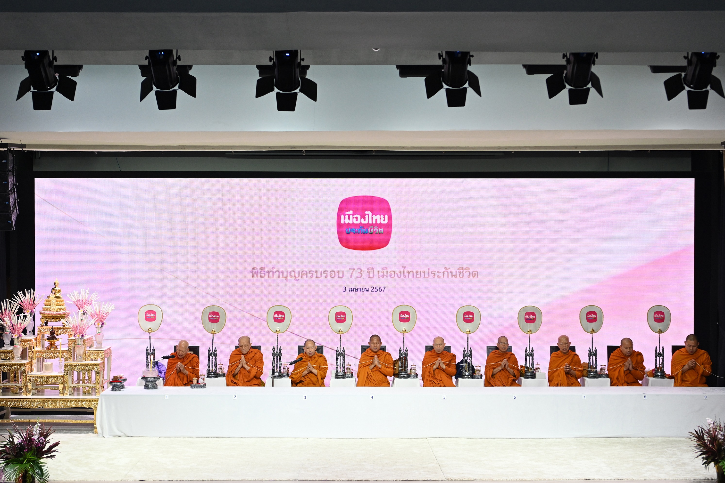 บริษัท เมืองไทยประกันชีวิต จำกัด (มหาชน) จัดพิธีทำบุญครบรอบ 73 ปีการก่อตั้งบริษัทฯ เพื่อความเป็นสิริมงคล ในการนี้ได้นิมนต์พระพรหมวชิราธิบดี เจ้าอาวาสวัดมหาธาตุยุวราชรังสฤษฎิ์ราชวรมหาวิหาร และคณะสงฆ์รวม 9 รูป ทำพิธีเจริญพระพุทธมนต์ พร้อมจัดพิธีสักการะสิ่งศักดิ์สิทธิ์ประจำบริษัทฯ โดยมี นายโพธิพงษ์ ล่ำซำ ประธานกรรมการ นางยุพา ล่ำซำ นายสาระ ล่ำซำ ประธานเจ้าหน้าที่บริหาร นายภูมิชาย ล่ำซำ ที่ปรึกษาประธานเจ้าหน้าที่บริหาร พร้อมด้วยคณะผู้บริหาร และพนักงานร่วมในพิธี งานจัดขึ้น ณ เมืองไทยประกันชีวิต สำนักงานใหญ่