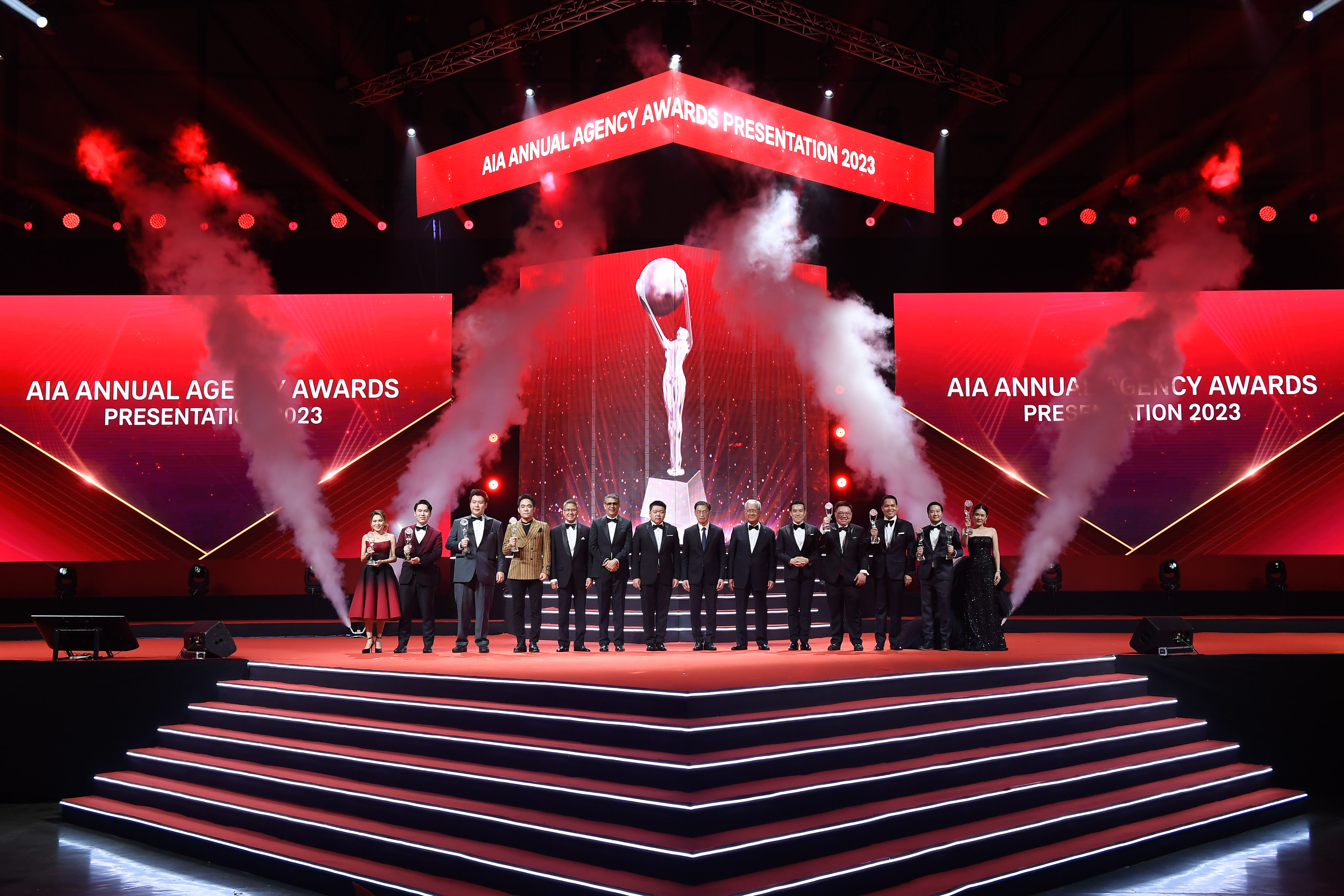 ในงาน AIA Annual Agency Awards Presentation 2023 ได้รับเกียรติจาก คุณอดิศร พิพัฒน์วรพงศ์ รองเลขาธิการ ด้านกฎหมาย คดีและคุ้มครองสิทธิประโยชน์ สำนักงานคณะกรรมการกำกับและส่งเสริมการประกอบธุรกิจประกันภัย (คปภ.) ขึ้นกล่าวแสดงความยินดีแก่ตัวแทนและผู้บริหารหน่วยที่ได้รับรางวัลในครั้งนี้ พร้อมด้วยคณะผู้บริหารจากกลุ่มบริษัทเอไอเอ นำโดย ดร.ณรงค์ชัย อัครเศรณี กรรมการอิสระ กลุ่มบริษัทเอไอเอ และประธานที่ปรึกษากรรมการ เอไอเอ ประเทศไทย ร่วมด้วยผู้บริหารระดับสูงของกลุ่มบริษัทเอไอเอ คุณหลี่ หยวน ชยอง ประธานเจ้าหน้าที่บริหารและกรรมการผู้จัดการใหญ่ คุณตัน ฮาค เลห์ ประธานเจ้าหน้าที่บริหารรระดับภูมิภาค และคณะผู้บริหาร เอไอเอ ประเทศไทย คุณนิคฮิล แอดวานี ประธานเจ้าหน้าที่บริหาร คุณณัฐพิสิษฐ์ ครุฑครองชัย ประธานเจ้าหน้าที่ฝ่ายตัวแทนประกันชีวิต ขึ้นกล่าวแสดงความยินดีและร่วมมอบรางวัลให้แก่พลังตัวแทนที่ได้รับรางวัล “ที่สุดแห่งปี 2566 (Of the Year 2023)”