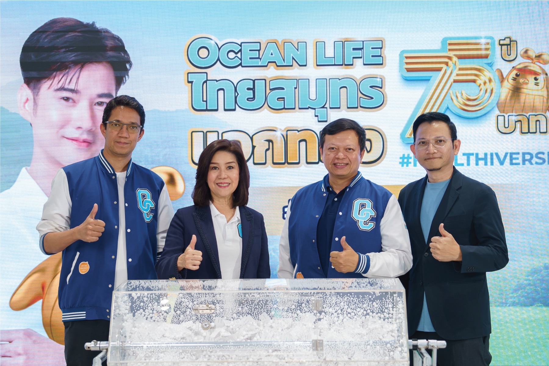 บมจ.ไทยสมุทรประกันชีวิต รักคือพลังของชีวิต โดยคุณนุสรา (อัสสกุล) บัญญัติปิยพจน์ กรรมการผู้จัดการ เป็นประธานในพิธีจับรางวัลครั้งที่ 1 แคมเปญ “OCEAN LIFE ไทยสมุทร 75 ปี แจกทอง 75 บาท” สำหรับลูกค้าผู้โชคดีจากการจับรางวัลครั้งแรกจะได้รับรางวัลทองคำโอชิ น้ำหนัก 1 สลึง จำนวน 75 รางวัล