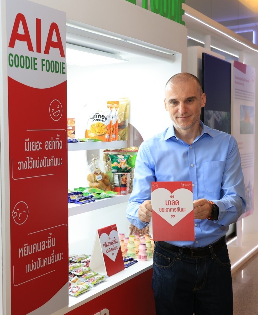 เอไอเอ ประเทศไทย นำโดย นางศรัณยา เทียนถาวร (ที่ 3 จากขวา) ประธานเจ้าหน้าที่ฝ่ายทรัพยากรบุคคล ร่วมด้วย นายโจฮัน ดีทอย (ที่ 2 จากซ้าย) ประธานเจ้าหน้าที่ฝ่ายลงทุน ดร. คริส-เตียน โรแลนด์ (ที่ 3 จากซ้าย) ประธานเจ้าหน้าที่ฝ่ายกลยุทธ์และดิจิทัล และ นางสาวรพีพร วงศ์ทองคำ (ที่ 2 จากขวา) ผู้อำนวยการฝ่ายสื่อสารองค์กรและภาพลักษณ์ เดินหน้าจัดกิจกรรม AIA Food Fighter เพื่อมุ่งลดปัญหาขยะอาหารล้นโลก (Food Waste) ซึ่งปัญหาขยะอาหารถือเป็นหนึ่งในสาเหตุหลักที่ส่งผลกระทบต่อสิ่งแวดล้อมและระบบนิเวศน์ อีกทั้งยังเป็นตัวการสำคัญที่ทำให้เกิดปัญหาก๊าซเรือนกระจก โดยเอไอเอ ได้ชวนพนักงานเอไอเอ ประเทศไทย ร่วมแคมเปญกู้โลกรณรงค์การบริโภคอาหารแต่พอดี พร้อมเปิดตัวรถต้นแบบ “AIA Goodie Foodie Truck” สำหรับแบ่งปันอาหาร ขนม และผลไม้ให้กับเพื่อนพนักงานที่ปฎิบัติงานอยู่ ณ อาคาร เอไอเอ ทาวเวอร์ สำนักงานใหญ่ เพื่อเปลี่ยนอาหารที่รับประทานไม่หมดแต่ยังสะอาดและมีคุณภาพดีให้เป็นอีกหนึ่งมื้ออร่อยของผู้อื่น ซึ่งนับเป็นเป้าหมายสำคัญของเอไอเอ ที่ต้องการมีส่วนในการสร้างโลกให้น่าอยู่และยั่งยืนสำหรับพวกเราคนไทยทุกคนด้วยอีกหนึ่งวิธีง่าย ๆ อย่างการช่วยลดขยะอาหาร ตลอดจนยังเป็นการตอกย้ำความเป็นผู้นำด้าน ESG และสอดคล้องตามพันธกิจของเอไอเอ ในการสนับสนุนให้ผู้คนกว่าพันล้านคนมีสุขภาพและชีวิตที่ดีขึ้น ‘Healthier, Longer, Better Lives’