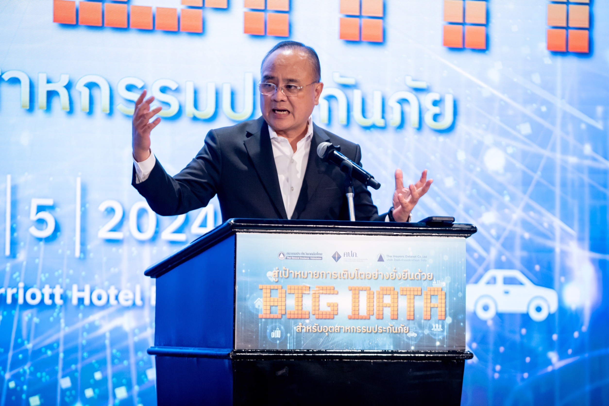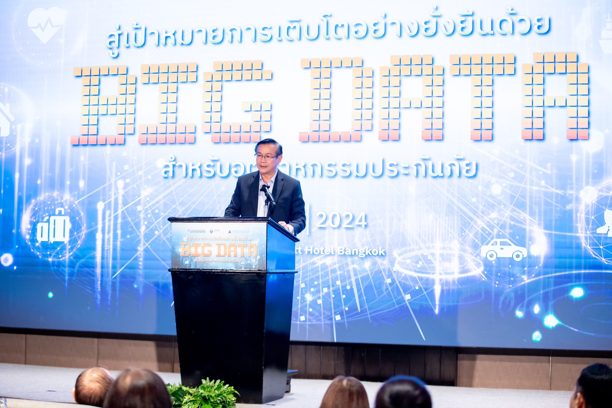 นายชูฉัตร ประมูลผล เลขาธิการคณะกรรมการกำกับและส่งเสริมการประกอบธุรกิจประกันภัย (เลขาธิการ คปภ.) เป็นประธานเปิดงานสัมมนา “สู่เป้าหมายการเติบโตอย่างยั่งยืนด้วย Big Data สำหรับอุตสาหกรรมประกันภัย” เมื่อวันที่ 7 พฤษภาคม 2567 ณ ห้องสุขุมวิท 1-3 ชั้น 3 โรงแรมเจดับบลิว แมริออท กรุงเทพฯ ในโอกาสนี้ เลขาธิการ คปภ. ได้กล่าวโดยมีใจความที่สำคัญตอนหนึ่งว่า ตามที่ สำนักงาน คปภ. ได้จัดทำระบบฐานข้อมูลการประกันภัย (Insurance Bureau System: IBS) ขึ้น โดยได้รับความร่วมมืออย่างดียิ่งจากสมาคมประกันวินาศภัยไทย และบริษัทประกันวินาศภัย ในการร่วมกันพัฒนาฐานข้อมูลประกันวินาศภัยให้มีความสมบูรณ์ ตลอดจนมีความร่วมมือระหว่างกันในการนำข้อมูลด้านประกันภัยต่าง ๆ ภายในระบบฐานข้อมูลการประกันภัยมาประมวลและวิเคราะห์เพื่อใช้ประโยชน์ด้านต่าง ๆ ซึ่งระบบ IBS จัดทำขึ้นจากการรวบรวมข้อมูลเกี่ยวกับการประกันภัยเพื่อเป็นฐานข้อมูล Big Data ของอุตสาหกรรมประกันภัย เพื่อสนับสนุน ส่งเสริม และยกระดับการดำเนินธุรกิจประกันภัยให้สามารถบริการประชาชนได้ดียิ่งขึ้น และจากความร่วมมืออย่างต่อเนื่องระหว่างสำนักงานคปภ. สมาคมประกันวินาศภัยไทย และบริษัทประกันวินาศภัยทุกแห่ง จึงประสบความสำเร็จอย่างดียิ่ง ส่งผลให้ฐานข้อมูลประกันวินาศภัย หรือ Non-Life Insurance Bureau System (Non-Life IBS) มีความครบถ้วนสมบูรณ์และมีคุณภาพ ทำให้สามารถนำข้อมูลมาใช้งานได้จริงอย่างเป็นรูปธรรมก่อให้เกิดประโยชน์ทั้งต่อภาครัฐ ภาคธุรกิจประกันภัย และประชาชน ในการใช้ประโยชน์จากฐานข้อมูลด้านประกันภัยที่มีความครบถ้วน ถูกต้อง สมบูรณ์ และมีคุณภาพ
