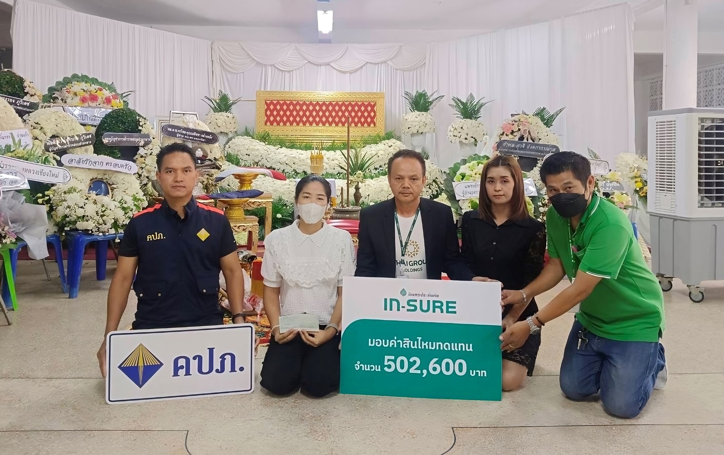 นายสุวิทย์ ชูดวง ผู้จัดการประจำสาขาพระนครศรีอยุธยา (คนกลาง) บริษัท อินทรประกันภัย จำกัด (มหาชน) หรือ INSURE หนึ่งในสายธุรกิจหลักของไทยกรุ๊ป โฮลดิ้งส์ กลุ่มธุรกิจประกันและการเงินในเครือทีซีซี เป็นตัวแทนลงพื้นที่มอบค่าสินไหมทดแทน จำนวน 502,600 บาท ให้กับครอบครัวของดาบตำรวจปิยนันท์ สีเสื้อ ผู้เสียชีวิตจากอุบัติเหตุรถชน ระหว่างปฏิบัติหน้าที่ในช่วงเทศกาลสงกรานต์ที่ผ่านมา โดยมีนายธนัท กุมสันเทียะ ผู้อำนวยการสำนักงาน คปภ. จังหวัดลพบุรี (คนซ้ายสุด) เป็นสักขีพยาน ณ วัดสะพานอิฐ อำเภอเมือง จังหวัดลพบุรี ทั้งนี้ INSURE อินทรประกันภัยขอแสดงความเสียใจกับความสูญเสียในครั้งนี้ และได้ส่งมอบค่าสินไหมทดแทนตามเงื่อนไขกรมธรรม์ ให้กับครอบครัวผู้เสียชีวิตทันที ตอกย้ำความมุ่งมั่นและพันธะสัญญาในการเคียงข้างลูกค้า พร้อมให้ความคุ้มครองลูกค้าที่ถือกรมธรรม์ของบริษัท