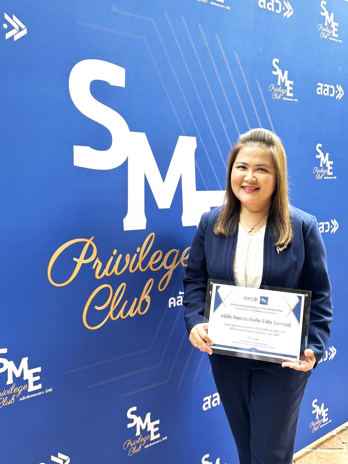 นางสาวพิมพักตรา มุ่งธัญญา ผู้อำนวยการฝ่ายกิจการสาขา 2 บริษัท ทิพยประกันภัย จำกัด (มหาชน) เข้ารับเกียรติบัตรผู้ร่วมสนับสนุนสิทธิประโยชน์ SMEs ประจำปี 2567 ด้านการเพิ่มผลิตภาพและลดต้นทุน จากสำนักงานส่งเสริมวิสาหกิจขนาดกลางและขนาดย่อม (สสว.) โดยได้รับเกียรติจากรองศาสตราจารย์ ดร.วีระพงศ์ มาลัย มาเป็นประธานในงานและมอบเกียรติบัตร ณ หอศิลป์บ้านจิมทอมป์สัน กรุงเทพฯ