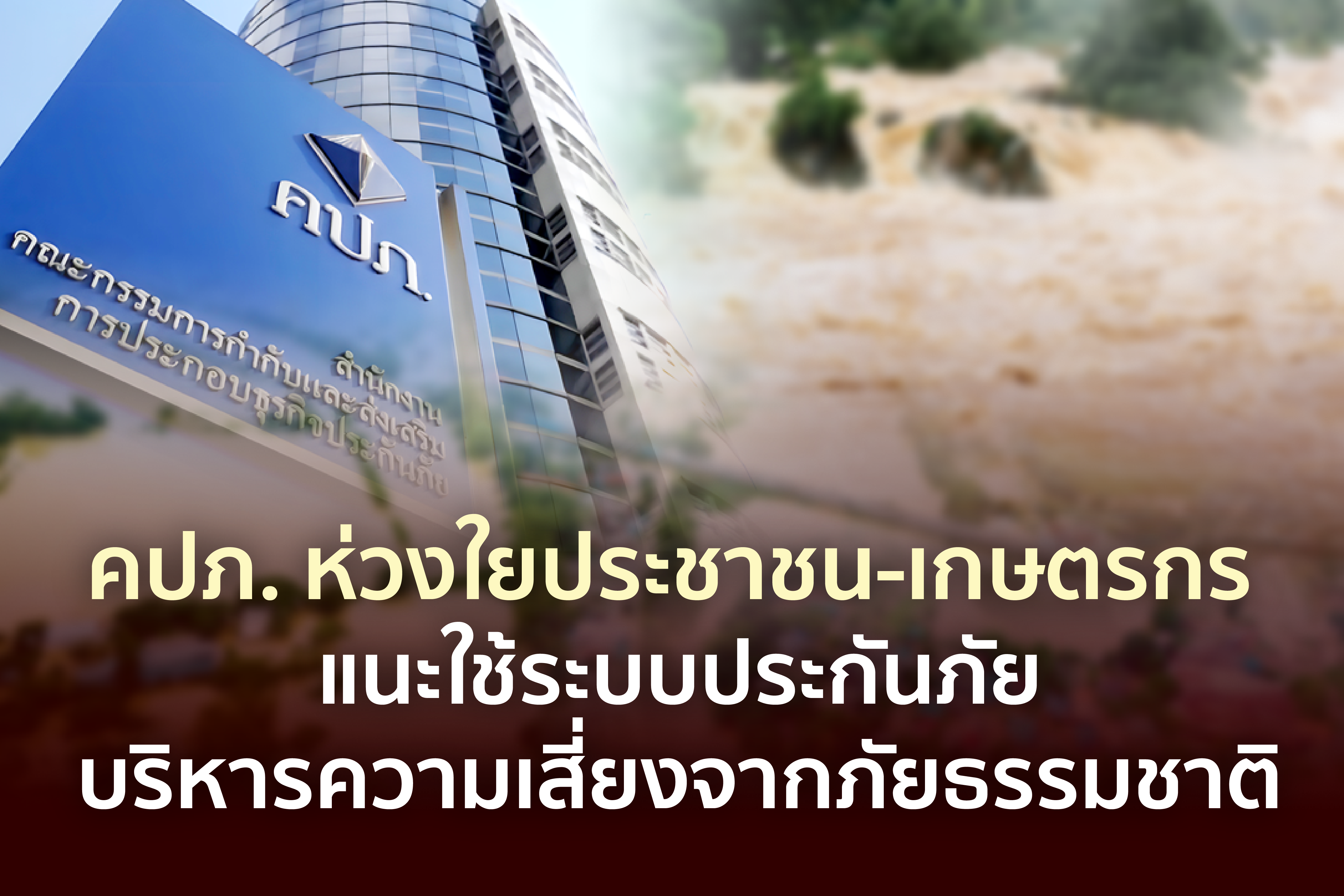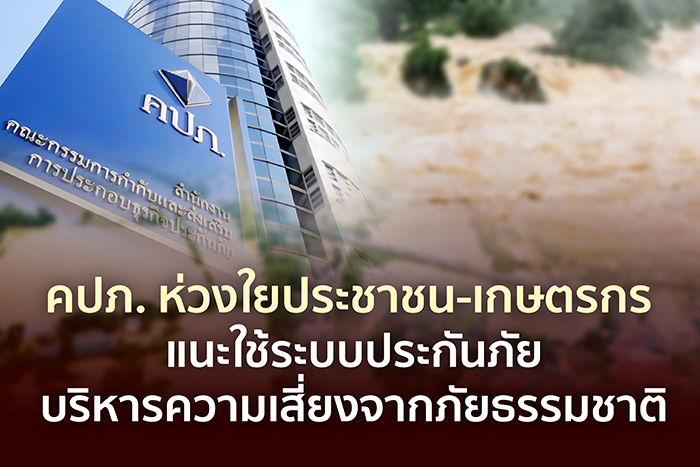 สำนักงานคณะกรรมการกำกับและส่งเสริมการประกอบธุรกิจประกันภัย (สำนักงาน คปภ.) ได้ติดตามสถานการณ์ดังกล่าวอย่างใกล้ชิด และมีความห่วงใยต่อความปลอดภัยในชีวิตและทรัพย์สินของพี่น้องประชาชน รวมถึงเกษตรกร ที่ปลูกพืชผลทางการเกษตร จึงขอให้ประชาชนและเกษตรกรให้ความสำคัญในการทำประกันภัยเพื่อใช้เป็นเครื่องมือในการคุ้มครองความเสียหายที่จะเกิดขึ้นจากภัยธรรมชาติ