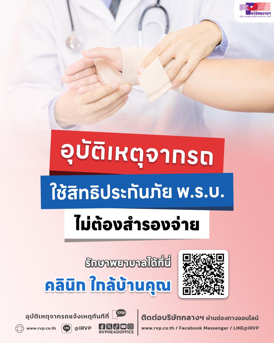 โดยบริษัทกลางฯ ขยายหน่วยบริการที่รองรับการรักษาพยาบาลในคลินิกที่มีความพร้อมให้ครอบคลุมทุกภูมิภาค ซึ่งจะเป็นการอำนวยความสะดวกให้ประชาชนเพิ่มขึ้น เมื่อเกิดอุบัติเหตุจากรถ สามารถเข้ารับบริการที่คลินิกในพื้นที่อยู่ใกล้ได้ทุกแห่งทันที เมื่อประสบอุบัติเหตุจากรถ ต้องรีบแจ้งเหตุเพื่อใช้สิทธิประกันภัย พ.ร.บ.ทันที ที่บริษัทกลางฯ Call Center 1791 ตลอด 24 ชั่วโมง หรือที่ Line @iRVP แจ้งเหตุเพื่อเป็นการช่วยให้ผู้ประสบภัยจากรถ ให้ได้รับการคุ้มครองเยียวยาจากการประกันภัย พ.ร.บ.อย่างรวดเร็ว ทันที