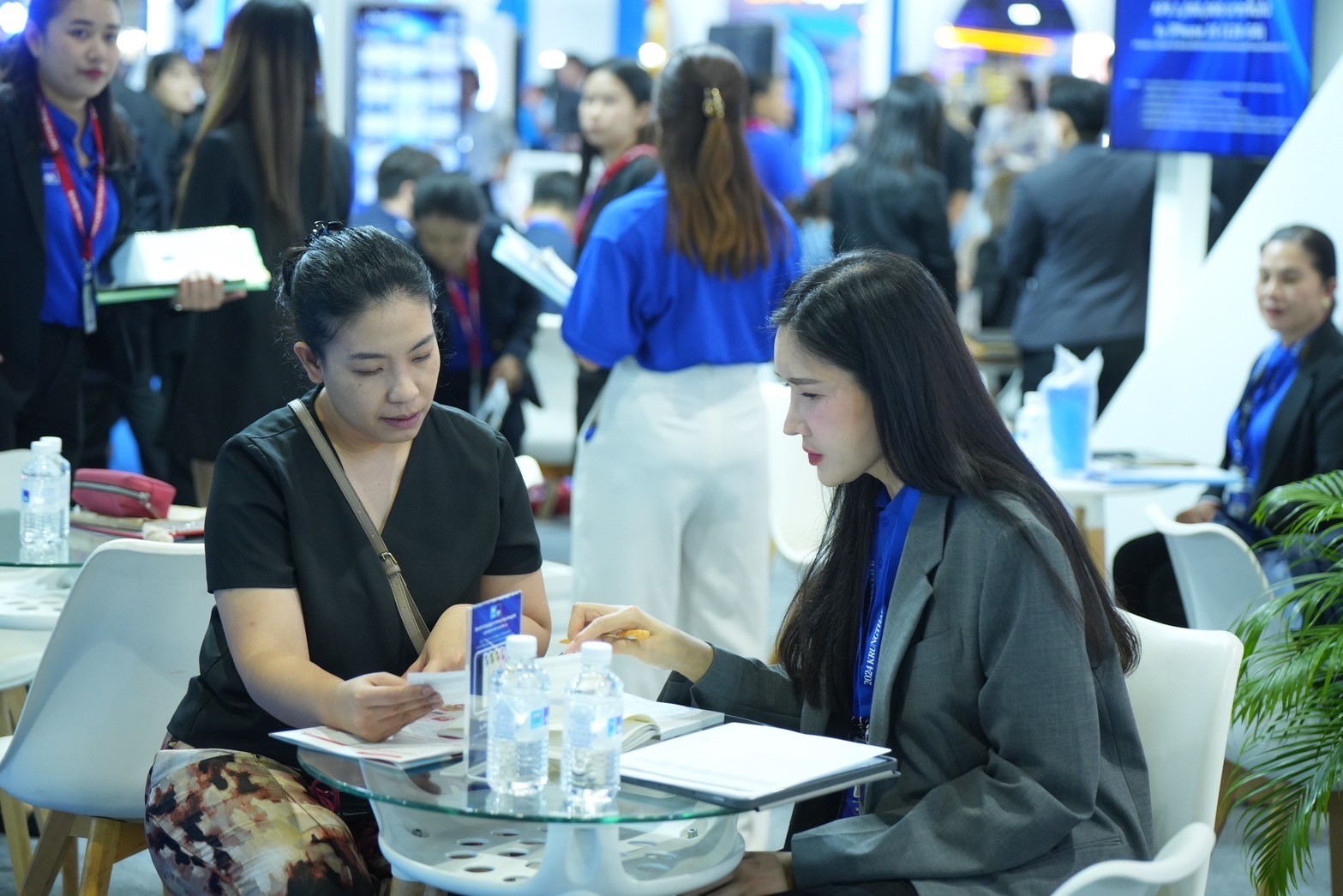 บมจ.กรุงไทย-แอกซ่า ประกันชีวิต ได้รับเกียรติจาก คุณสันติ วิริยะรังสฤษฎ์ ประธานการจัดงานมหกรรมการเงิน Money Expo (คนที่ 3 จากซ้าย) ร่วมเปิดบูธในงานมหกรรมการเงิน กรุงเทพ ครั้งที่ 24 Money Expo 2024 Bangkok โดยมี คุณบุปผาวดี โอวรารินท์ ประธานเจ้าหน้าที่บริหาร ฝ่ายทรัพยากรบุคคลและภาพลักษณ์องค์กรและการสื่อสารองค์กร (คนที่ 3 จากขวา) คุณชัยณรงค์ เอื้อสิทธิชัย ประธานเจ้าหน้าที่บริหาร ฝ่ายจัดจำหน่าย (คนที่ 2 จากขวา) ดร.อุกฤษฎ์ ศรีดโรมนต์ ประธานเจ้าหน้าที่บริหาร ฝ่ายตัวแทน และฝ่ายฝึกอบรมและพัฒนาฝ่ายจัดหน่าย (คนขวาสุด) พร้อมผู้บริหารฝ่ายตัวแทน และตัวแทนให้การต้อนรับและร่วมถ่ายภาพเป็นที่ระลึก ณ อาคารชาเลนเจอร์ 2-3 อิมแพค เมืองทองธานี