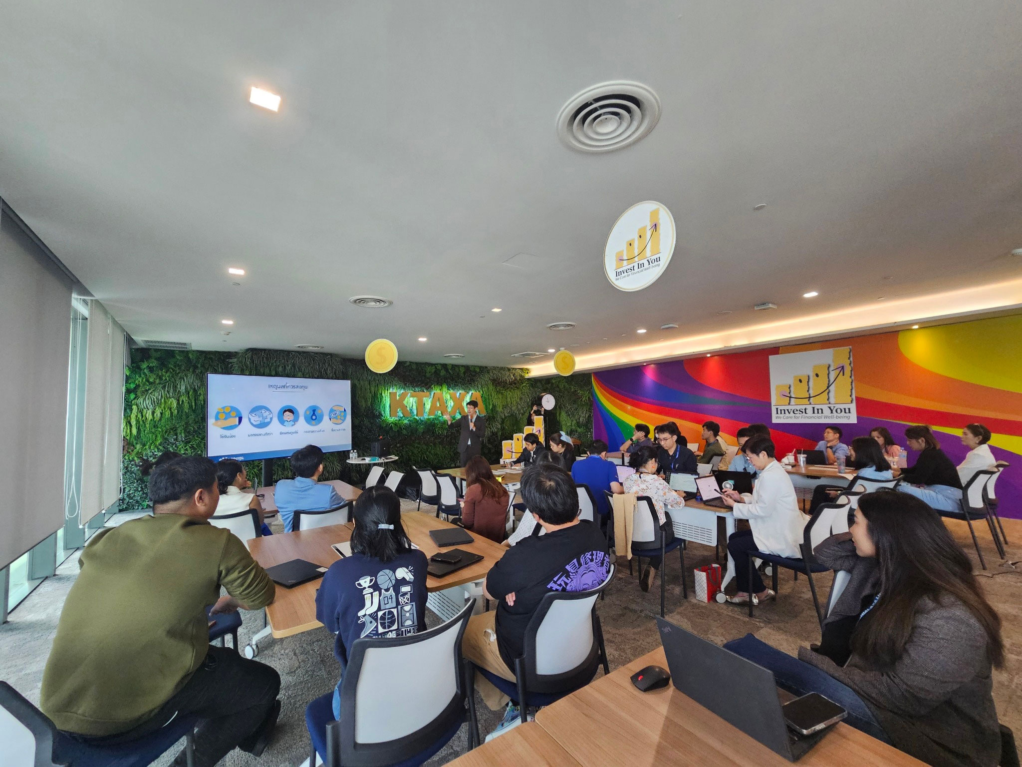 บมจ.กรุงไทย-แอกซ่า ประกันชีวิต นำโดย คุณสรัสวดี คุปตพงศ์ ประธานเจ้าหน้าที่บริหาร แผนกทรัพยากรบุคคลเพื่อพันธมิตรธุรกิจ (แถวหน้า คนที่ 4 จากขวา) จัดกิจกรรมเกี่ยวกับสุขภาพทางการเงิน "Invest in You, We Care for Financial Well-being" ในวันที่ 10-14 มิถุนายน 2567 ภายในงานมีกิจกรรมต่างๆ มากมาย ที่ให้ความรู้ความเข้าใจเกี่ยวกับการวางแผนทางการเงินโดยผู้เชี่ยวชาญ ในเรื่องผลิตภัณฑ์ประกันชีวิต กองทุนรวม และการเกษียณ นอกจากนี้ มีการตรวจเช็คสุขภาพทางการเงิน การเรียนออนไลน์เรื่องการเงิน การเรียนรู้เกี่ยวกับหุ้นแอกซ่า Cashflow Boardgame และมีบูธทางการเงิน ที่ได้รับการสนับสนุนจากธนาคารกรุงไทย ผู้จัดการกองทุน KTAM และบูธออมทองกับออโรร่า เพื่อให้คำแนะนำรวมถึงมอบสิทธิพิเศษต่างๆ ให้กับพนักงาน