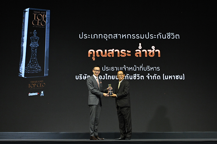 นายสาระ ล่ำซำ ประธานเจ้าหน้าที่บริหาร บริษัท เมืองไทยประกันชีวิต จำกัด (มหาชน) รับรางวัลสุดยอดผู้นำองค์กรแห่งปี “THAILAND TOP CEO OF THE YEAR 2024” ประเภท “อุตสาหกรรมประกันชีวิต” โดยเป็นซีอีโอรายแรกที่ได้รับรางวัลดังกล่าวติดต่อกัน 3 ปี ซึ่งจัดขึ้นโดยนิตยสาร Business+ บริษัท เออาร์ไอพี จำกัด (มหาชน) ร่วมกับคณะพาณิชยศาสตร์และการบัญชี มหาวิทยาลัยธรรมศาสตร์ เพื่อยกย่องและเชิดชูเกียรติสุดยอดผู้นำองค์กรแห่งปีที่คุณสมบัติถึงพร้อมด้วยวิสัยทัศน์ ความเป็นผู้นำ ความสามารถในการบริหารองค์กร คำนึงถึงสิ่งแวดล้อมและชุมชน เพื่อสร้างความยั่งยืนให้แก่องค์กร และต่อยอดไปสู่การพัฒนาเศรษฐกิจไทยให้ยั่งยืน พร้อมเป็นแบบอย่างให้กับผู้บริหารหรือซีอีโอรุ่นใหม่ได้เรียนรู้และสร้างความสำเร็จของตนเองต่อไป ตามแนวคิด “Iconify the Master” หรือ ต้นแบบผู้นำแห่งอนาคต ทั้งนี้ ได้รับเกียรติจาก ฯพณฯ นุรักษ์ มาประณีต องคมนตรี ประธานในพิธีมอบรางวัลดังกล่าว ณ โรงแรมอินเตอร์คอนติเนนตัล กรุงเทพฯ.
