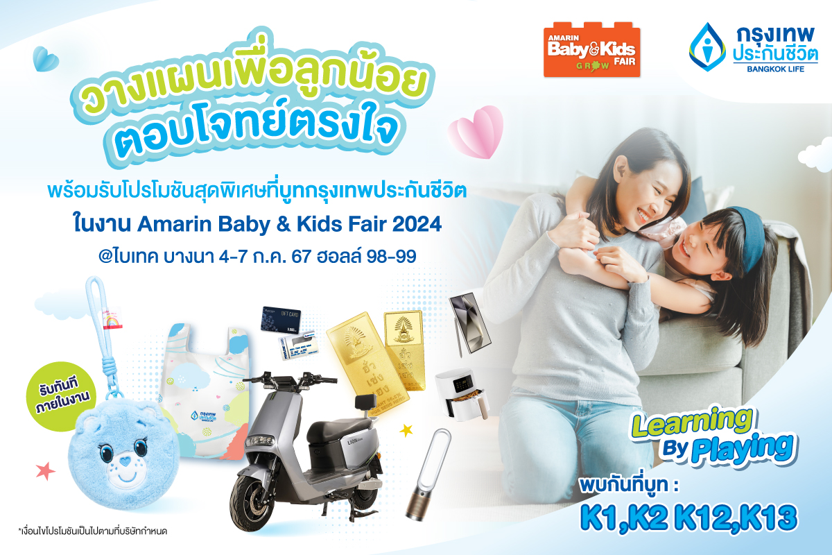 พบกับบูทกรุงเทพประกันชีวิตพร้อมของรางวัลและกิจกรรม เกมต่าง ๆ มากมายได้ในงาน Amarin Baby & Kids Fair 2024 บูท K1-2 และ K12-13 ระหว่าง 10.00 – 20.00 น. ณ ศูนย์การประชุมไบเทค บางนา ฮอลล์ 98-99 และสามารถติดตามรายละเอียดเพิ่มเติมแบบประกันต่างๆ ได้ที่เว็บไซต์กรุงเทพประกันชีวิต www.bangkoklife.com หรือติดต่อ Call Center โทร. 02-777-8888