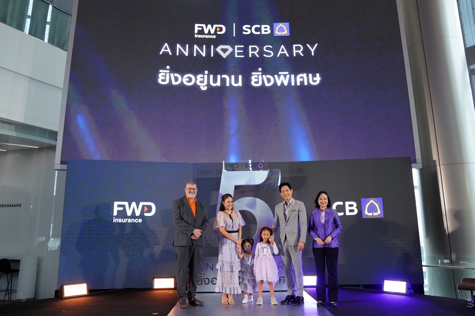 ธนาคารไทยพาณิชย์ และเอฟดับบลิวดี ประกันชีวิต ฉลองความสำเร็จ 5 ปี ในการเป็นพันธมิตรทางธุรกิจ ที่ร่วมมอบทางเลือกผลิตภัณฑ์ความคุ้มครองชีวิตและสุขภาพ ด้วยช่องทางที่เชื่อมถึงกันอย่างไร้รอยต่อ โดยมอบความคุ้มครองให้ลูกค้าผู้ถือกรมธรรม์ เดินหน้าสานต่อความร่วมมือเพื่ออนาคตที่มั่นคงทางสุขภาพการเงินของคนไทย จุดพลุ “ประกันยิ่งอยู่นาน ยิ่งพิเศษ” มอบทางเลือกประกันชีวิตสะสมทรัพย์ระยะยาว ให้ลูกค้าเลือกระยะเวลาชำระเบี้ย 7 ปี 8 ปี หรือ 9 ปี พร้อมรับเงินคืนทุกปี สมัครง่ายไม่ต้องตรวจสุขภาพ ไม่ต้องตอบคำถามสุขภาพ พิเศษกว่าที่เคยด้วย โปรโมชัน 5 ต่อ พร้อมทั้งดึง “ตู่ ภพธร สุนทรญาณกิจ” ศิลปิน-นักแต่งเพลงฟีล อบอุ่น นั่งแท่นพรีเซนเตอร์คนใหม่ ร่วมสื่อสารและตอกย้ำความตั้งใจของสององค์กรที่เดินหน้าสนับสนุนคนไทยวางแผนชีวิตระยะยาวด้วยประกันชีวิตสะสมทรัพย์ระยะยาว