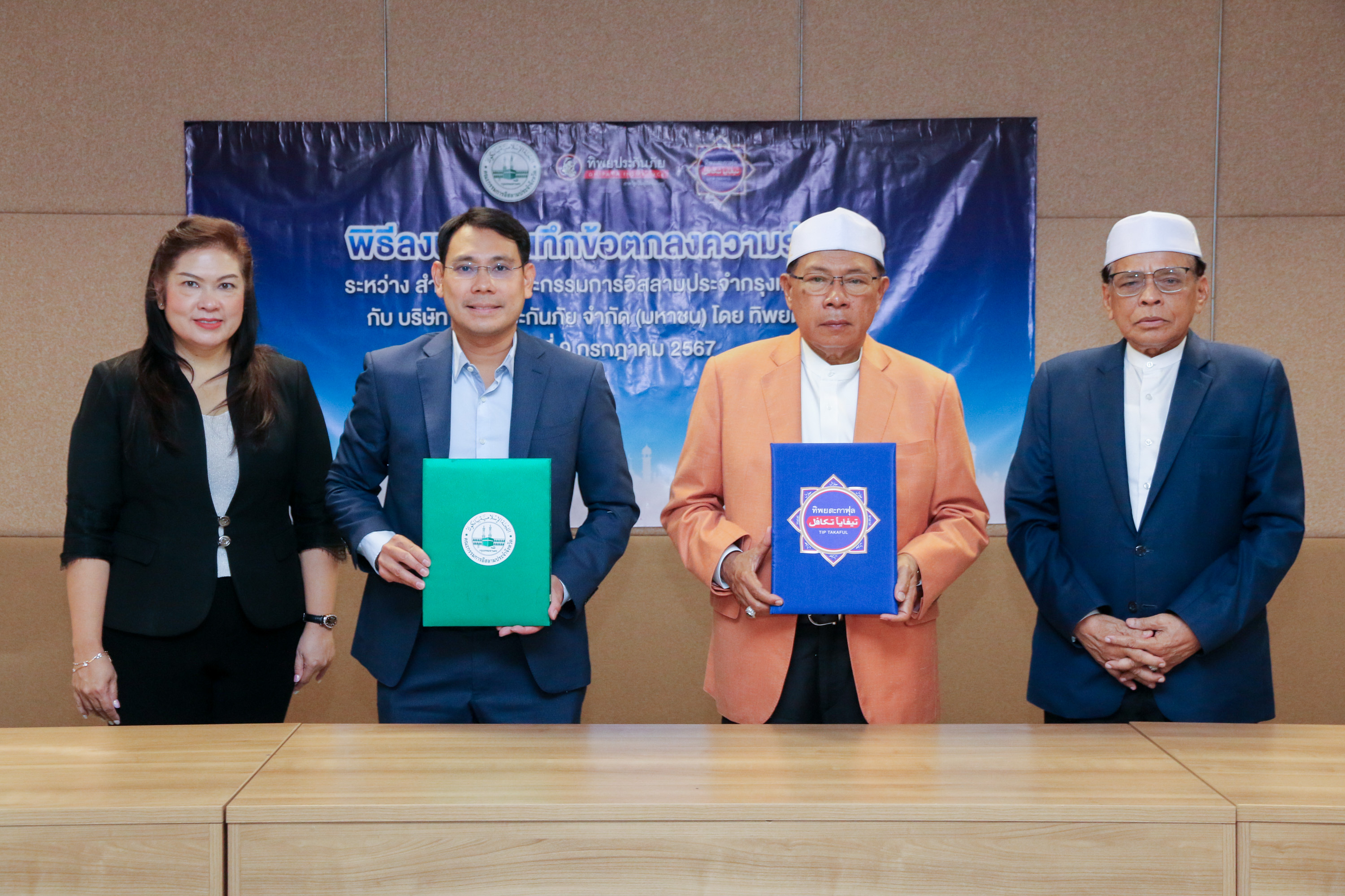 ดร.พลรัตน์ เอกโยคยะ รองกรรมการผู้จัดการใหญ่ นางสาวนนทิช์ญา ปานเจริญ ผู้ช่วยกรรมการผู้จัดการใหญ่ บริษัท ทิพยประกันภัย จำกัด (มหาชน) ร่วมลงนามบันทึกข้อตกลง (MOU) กับสำนักงานคณะกรรมการอิสลามประจำกรุงเทพมหานคร โดยมี นายสมัย เจริญช่าง ประธานกรรมการอิสลามประจำกรุงเทพมหานคร และผศ.ดร.วิศรุต เลาะวิถี รองประธานกรรมการอิสลามประจำกรุงเทพมหานคร เข้าร่วมลงนาม