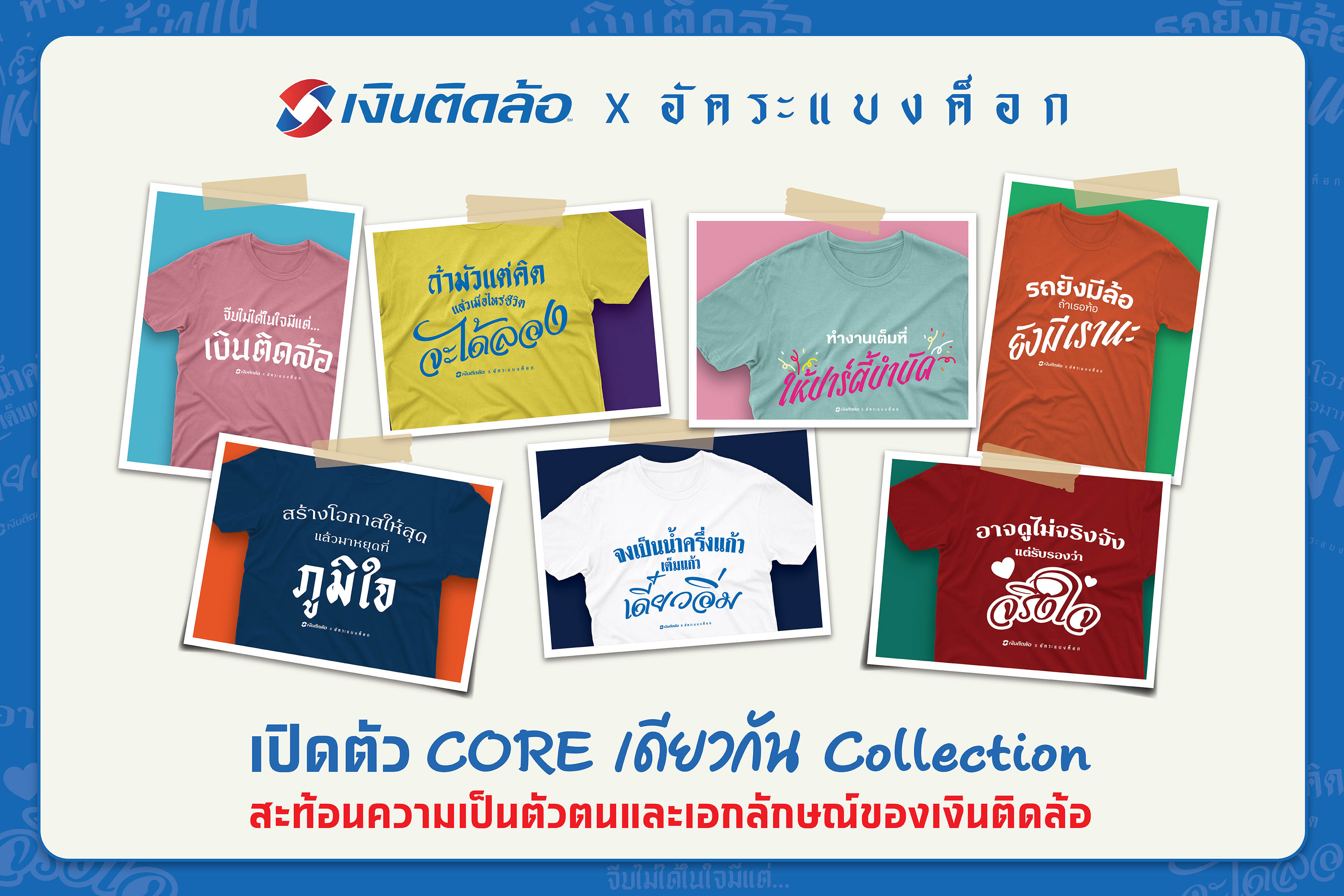"CORE เดียวกัน Collection" นี้ ประกอบด้วยเสื้อยืดหลากหลายสีสัน โดยแต่ละแบบสื่อถึง 7 ค่านิยมองค์กรชาวเงินติดล้อในนิยามใหม่ สไตล์อัคระแบงค็อก คอลเลกชันนี้ไม่เพียงแต่เป็นการสร้างสรรค์แฟชั่น แต่ยังเป็นการตอกย้ำความสำคัญของค่านิยมองค์กรที่เป็นหัวใจในการขับเคลื่อนธุรกิจของ บมจ.เงินติดล้อ อีกด้วย โดยเสื้อคอลเลกชันนี้เปิดจำหน่ายสำหรับพนักงานภายในองค์กร รวมถึงบุคคลภายนอกที่สนใจอยากสร้างพลังบวกให้กับทุกๆ วัน ผู้สนใจสามารถติดตามรายละเอียดเพิ่มเติมเกี่ยวกับ "CORE เดียวกัน Collection" ได้ที่ Line @TIDLORShop