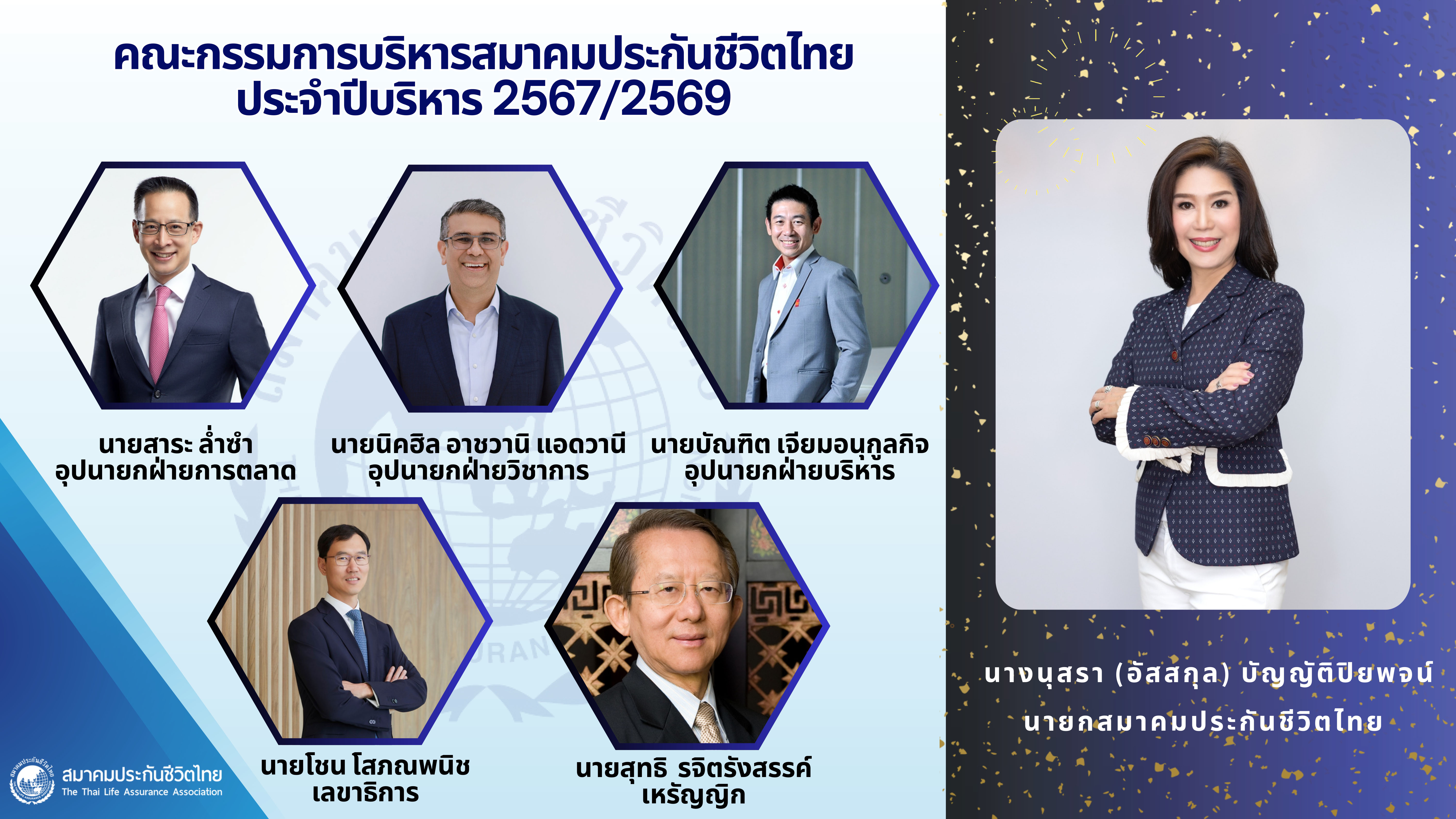 สมาคมประกันชีวิตไทย จัดการประชุมใหญ่สามัญประจำปี 2567 เมื่อวันที่ 31 กรกฎาคม 2567 โดยมีวาระสำคัญคือการพิจารณาเลือกตั้งนายกสมาคมประกันชีวิตไทยและคณะกรรมการบริหารสมาคมชุดใหม่ ประจำปีบริหาร 2567 – 2569 (1 กรกฎาคม 2567 – 30 มิถุนายน 2569) ซึ่งในที่ประชุมได้มีการลงมติอย่างเป็นเอกฉันท์เลือก นางนุสรา (อัสสกุล) บัญญัติปิยพจน์ ให้ดำรงตำแหน่ง นายกสมาคมประกันชีวิตไทย สำหรับรายนามกรรมการบริหารสมาคมประกันชีวิตไทย ประจำปีบริหาร 2567 - 2569 มีดังต่อไปนี้