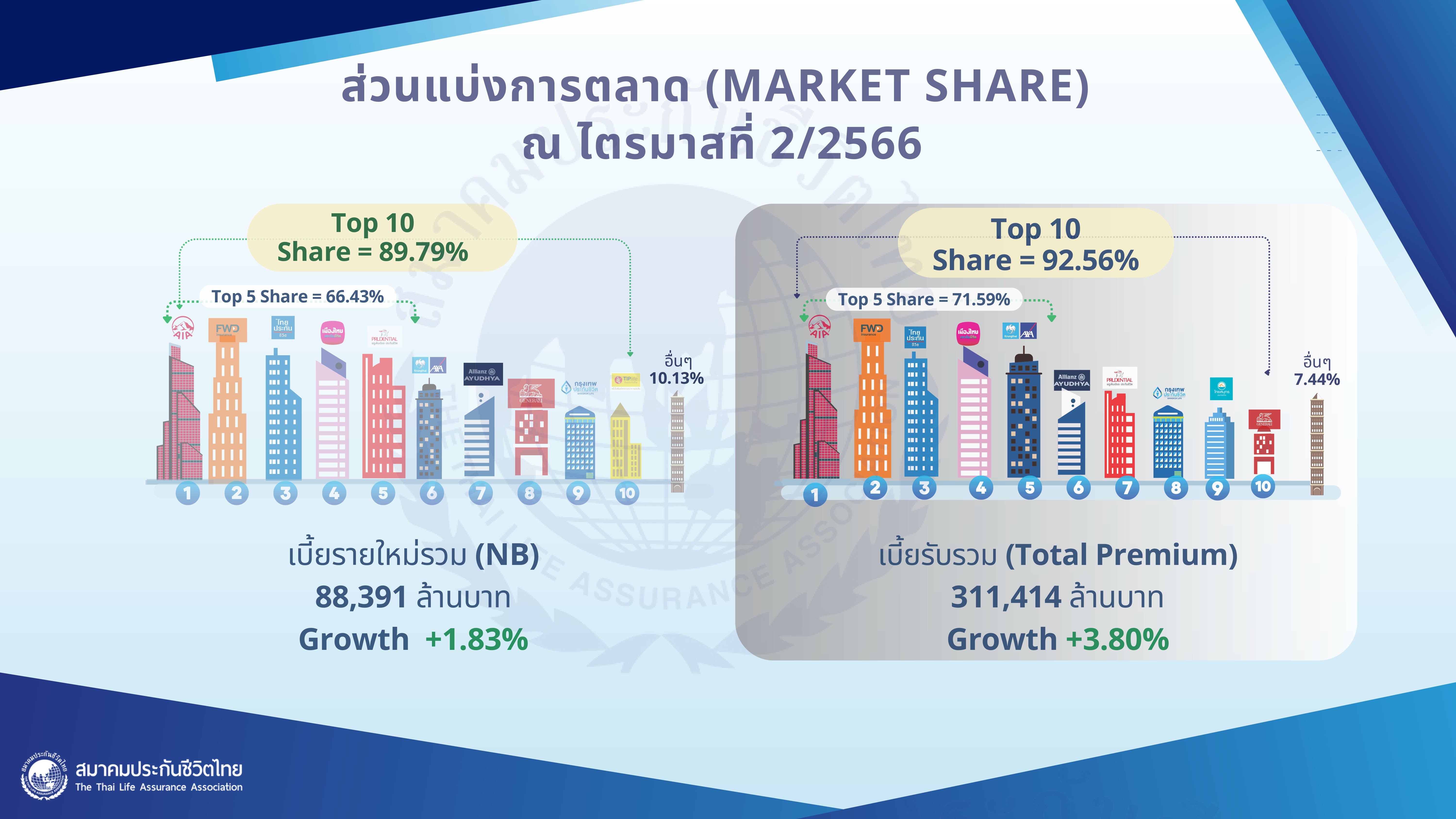 1.) เบี้ยประกันภัยรับปีแรก (First Year Premium) 58,266.84 ล้านบาท เติบโตเพิ่มขึ้นร้อยละ 3.21