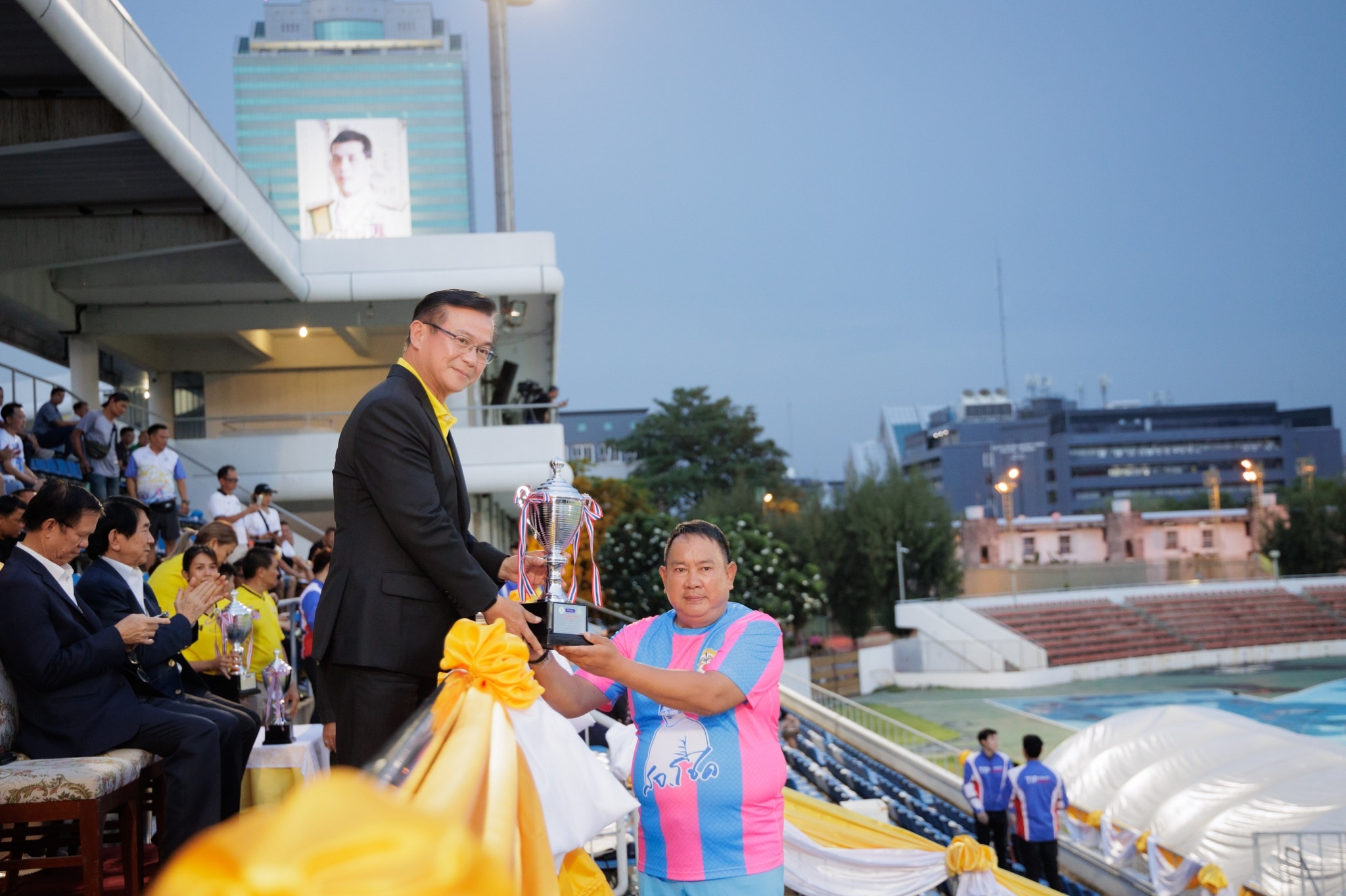 พิธีปิดการแข่งขันฟุตบอลอาวุโสเฉลิมพระเกียรติ 72 พรรษา ชิงถ้วยพระราชทาน พระบาทสมเด็จพระเจ้าอยู่หัว จัดขึ้นโดยทิพยประกันภัย ร่วมกับ กทม. และสมาคมกีฬาแห่งกรุงเทพฯ จัดขึ้นตั้งแต่วันที่ 10 มิถุนายน - 3 สิงหาคม 2567 งานนี้ได้รับเกียรติจาก ดร.ชัชชาติ สิทธิพันธุ์ ผู้ว่าราชการกรุงเทพมหานคร เป็นประธานในพิธี พร้อมด้วย ดร.สมพร สืบถวิลกุล ประธานเจ้าหน้าที่บริหาร บริษัท ทิพย กรุ๊ป โฮลดิ้งส์ จำกัด (มหาชน) และกรรมการผู้จัดการใหญ่ บริษัท ทิพยประกันภัย จำกัด (มหาชน) นายถิรชัย วุฒิธรรม นายกสมาคมกีฬาแห่งจังหวัดกรุงเทพมหานคร และดร.นิวัตน์ ลิ้มสุขนิรันดร์ อธิบดีกรมพลศึกษา เข้าร่วมงาน