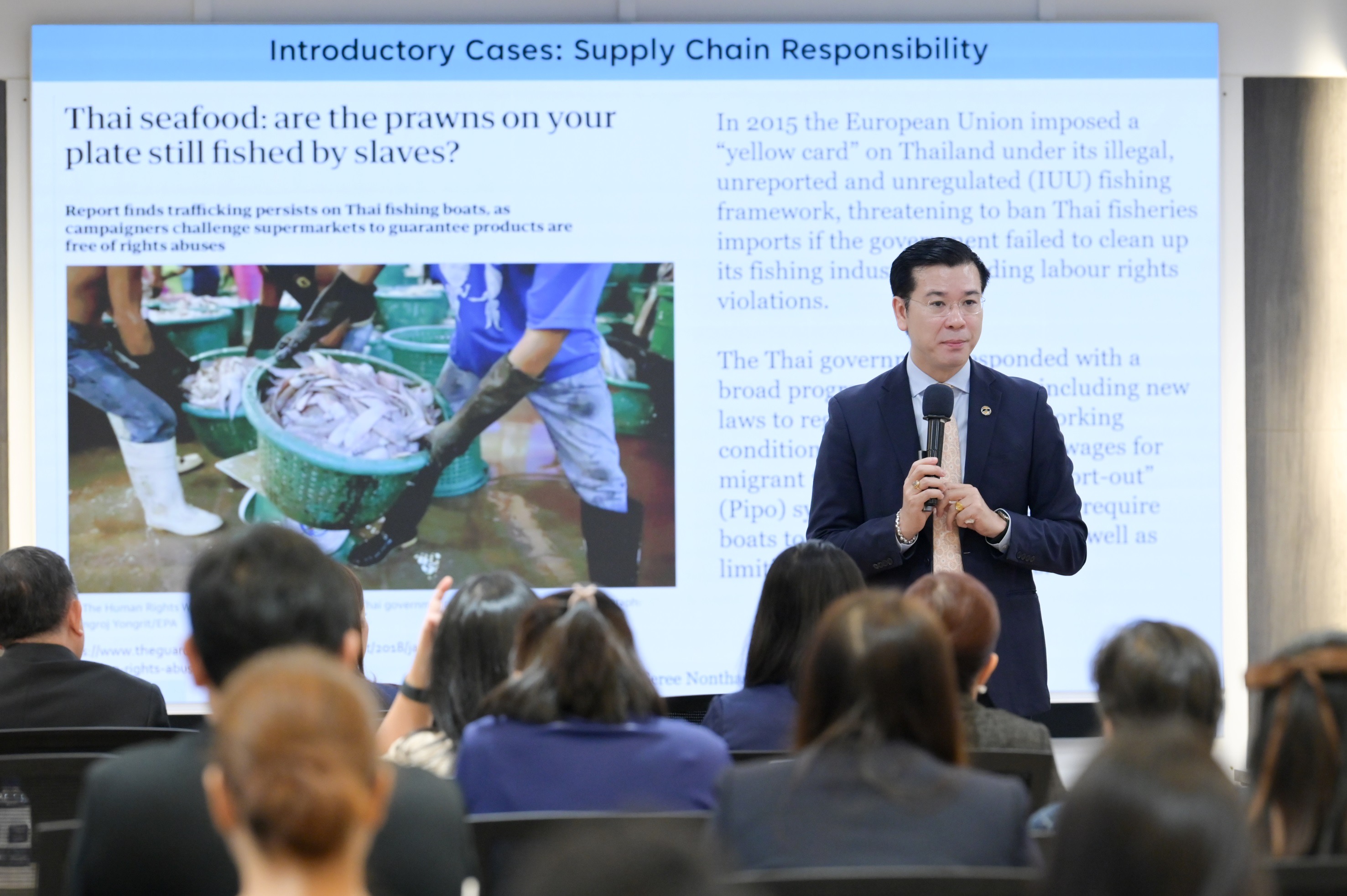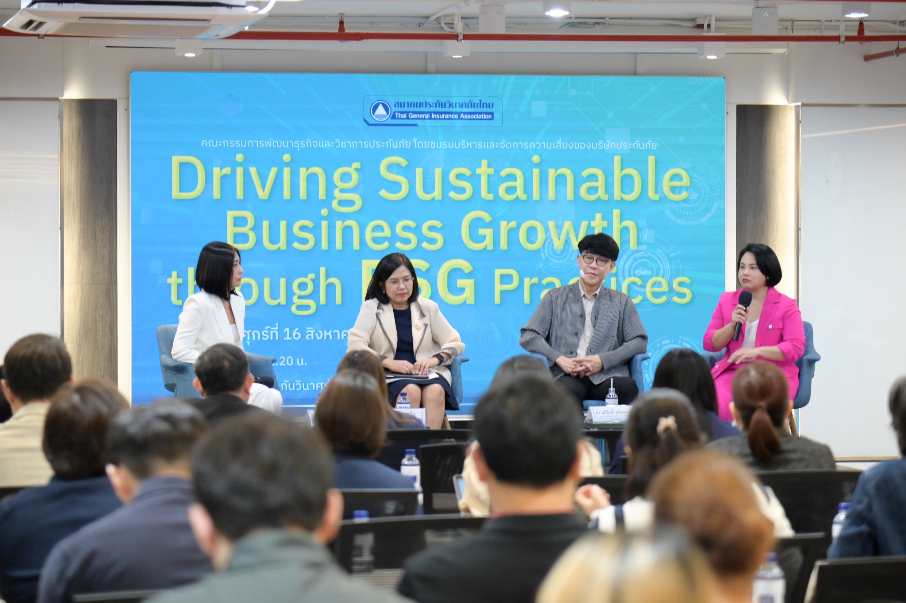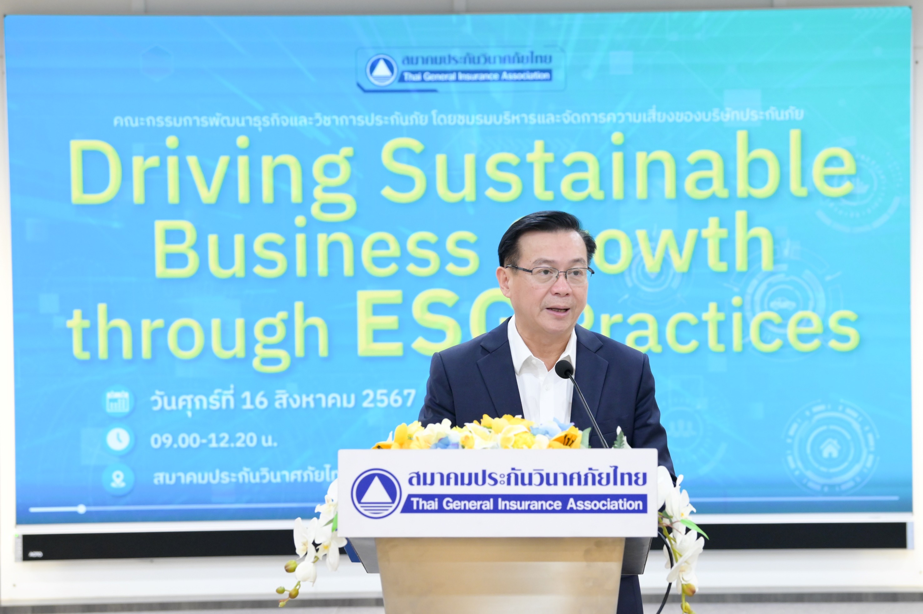 ด้วยเหตุนี้ สมาคมประกันวินาศภัยไทย โดยคณะพัฒนาธุรกิจและวิชาการประกันภัย และชมรมบริหารและจัดการความเสี่ยงของบริษัทประกันภัย จึงได้มีการศึกษาและผลักดันให้ธุรกิจประกันภัย มุ่งเน้นพัฒนาแนวทางในการดําเนินการด้าน ESG โดยการให้บริษัทประกันวินาศภัยจัดทำคู่มือแนวปฏิบัติในเรื่องดังกล่าว เพื่อให้มีการบริหารจัดการความเสี่ยงแบบองค์รวม มีการกำกับดูแลกิจการที่ดี คำนึงถึงผู้มีส่วนได้เสียอย่างรอบด้านในระยะยาว และเพื่อตอกย้ำการดำเนินงานที่ตระหนักถึงความสำคัญด้านสิ่งแวดล้อม สังคม และธรรมาภิบาล พร้อมทั้งได้มีการจัดสัมมนาเรื่อง “Driving Sustainable Business Growth through ESG Practices” ขึ้นเมื่อวันศุกร์ที่ 16 สิงหาคม 2567 ในรูปแบบไฮบริดทั้ง Online และ Onsite ซึ่งมีผู้เข้าร่วมสัมมนาจำนวนกว่า 400 ท่าน เพื่อส่งเสริมแนวทางการปฏิบัติด้าน ESG ที่เป็นรูปธรรม โดยการผนวกเข้ากับกลยุทธ์ทางธุรกิจและวัฒนธรรมองค์กร เพื่อยกระดับมาตรฐานด้าน ESG ให้เป็นที่ยอมรับในระดับประเทศและระดับสากล โดยได้รับเกียรติจากวิทยากรผู้ทรงคุณวุฒิเปี่ยมด้วยความรู้และประสบการณ์ในด้าน ESG จากหลากหลายธุรกิจ มาร่วมแบ่งปันความรู้และประสบการณ์ในการบริหารจัดการ การกำหนดนโยบาย รวมถึงการผนวกเรื่องความยั่งยืนและ ESG เข้ามาพัฒนาองค์กร อันจะนำไปสู่การเติบโตของธุรกิจประกันภัยอย่างยั่งยืน ประกอบด้วย ดร.เสรี นนทสูติ รองกรรมการผู้จัดการอาวุโส มูลนิธิสถาบันวิจัยและพัฒนาองค์กรภาครัฐและกรรมการสหประชาชาติว่าด้วยสิทธิทางเศรษฐกิจ สังคม และวัฒนธรรมผู้ทรงคุณวุฒิด้านกฎหมาย สำนักงาน คปภ. ที่ให้เกียรติมาเป็น Keynote Speech บรรยายเรื่อง “Driving Growth and Innovation through Sustainable Business Practices” พร้อมด้วยวิทยากรจากสำนักงาน คปภ. ภาคธุรกิจประกันภัย และภาคธุรกิจอื่น ๆ ร่วมในการเสวนาหัวข้อ “Embedding ESG into Business Strategy and Corporate Culture” ประกอบด้วย
