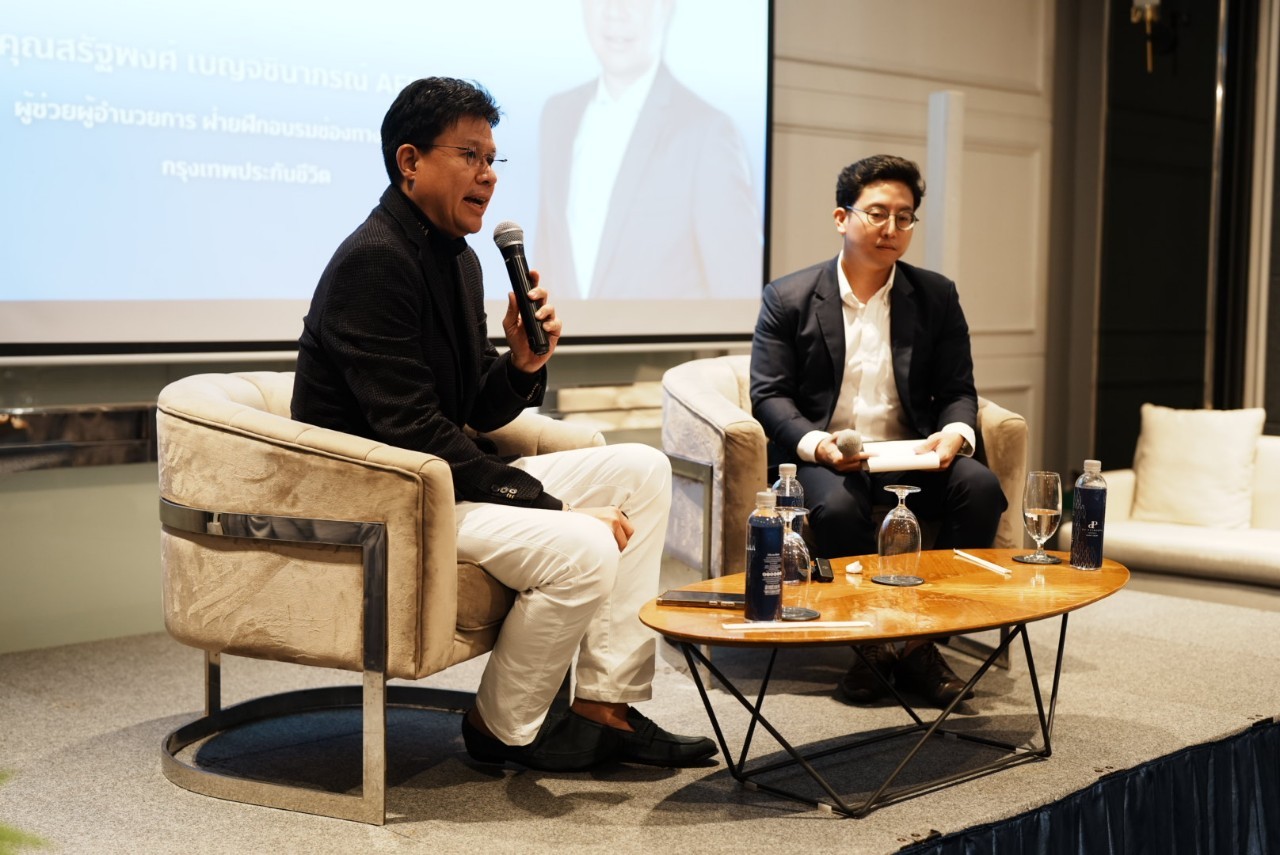 พร้อมด้วยนายสรัฐพงศ์ เบญจชินาภรณ์ ผู้ช่วยผู้อำนวยการ ฝ่ายฝึกอบรมช่องทางการขาย บริษัท กรุงเทพประกันชีวิต จำกัด (มหาชน) (ที่สามจากซ้าย) อธิบายถึงความสำคัญของประกันโรคร้ายแรง ที่จำเป็นต้องมีควบคู่กับประกันสุขภาพ ทั้งนี้ การจัดงานสัมมนาดังกล่าวเป็นการจัดสัมมนาให้ความรู้ลูกค้าธนาคารทิสโก้ทั้ง 4 ภาค ซึ่งจัดต่อเนื่องเป็นปีที่สอง ถือเป็นอีกหนึ่งพันธกิจความร่วมมือระหว่างธนาคารทิสโก้และกรุงเทพประกันชีวิต ในการสร้างความมั่นคงและปกป้องความมั่งคั่งให้ชีวิตคนไทยอย่างครบวงจร ครอบคลุมทั้งการเสริมสร้างความรู้ในเรื่องวางแผนการเงินเพื่อการเกษียณ การดูแลสุขภาพทั้งก่อนและหลังเกษียณ รวมถึงการคิดค้นผลิตภัณฑ์รูปแบบใหม่เพื่อการเกษียณที่มีคุณภาพ ร่วมกันจัดกิจกรรมส่งเสริมการตลาด เป็นต้น