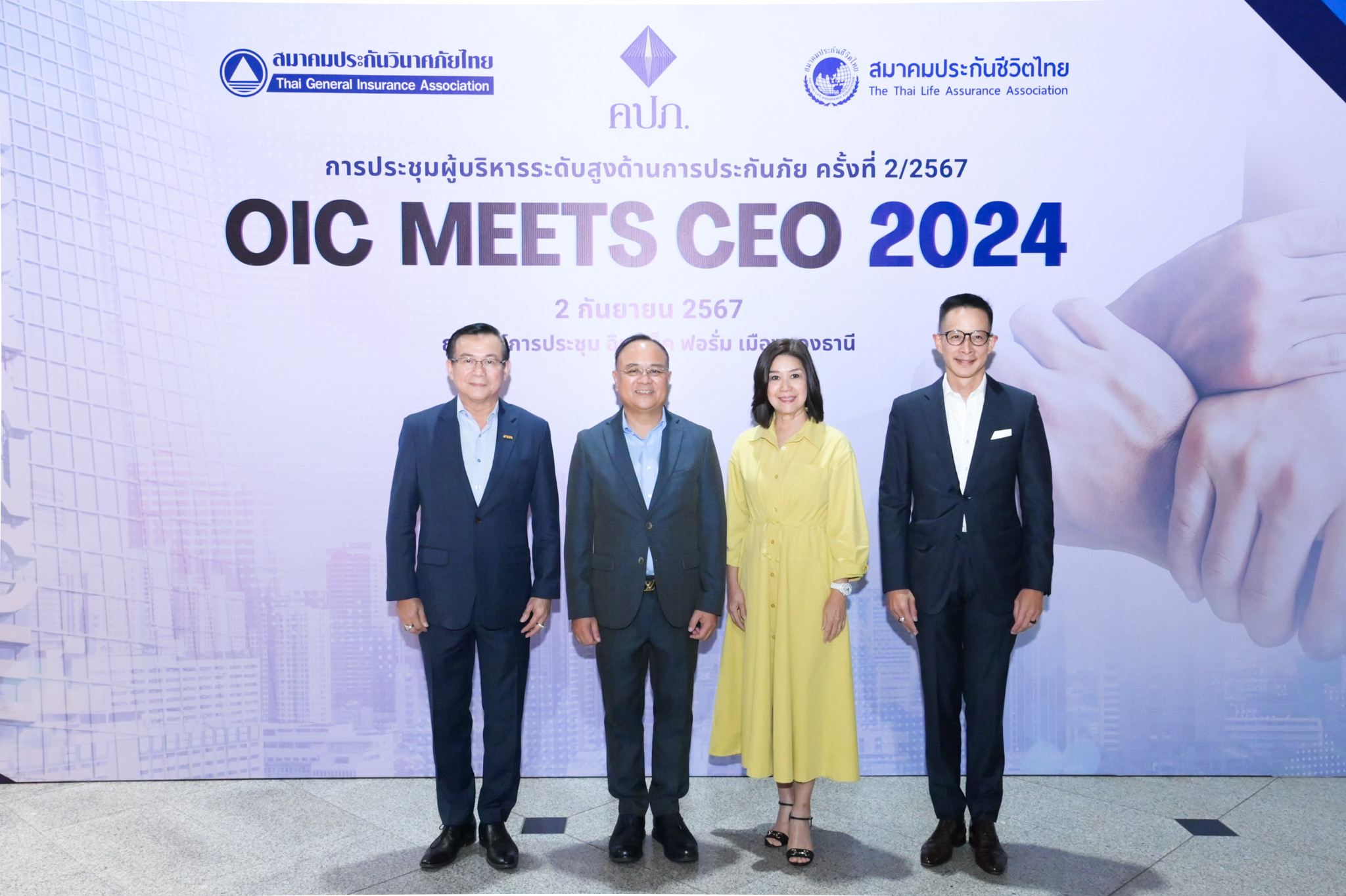 ดร.สมพร สืบถวิลกุล นายกสมาคมประกันวินาศภัยไทย พร้อมด้วยคณะกรรมการบริหารและที่ปรึกษา เข้าร่วมการประชุมผู้บริหารระดับสูงด้านการประกันภัย (OIC Meets CEO 2024) ครั้งที่ 2/2567 ระหว่างสำนักงานคณะกรรมการกำกับและส่งเสริมการประกอบธุรกิจประกันภัย (คปภ.) สมาคมประกันวินาศภัยไทย และสมาคมประกันชีวิตไทย เพื่อหารือร่วมกับภาคธุรกิจประกันภัยในประเด็นต่าง ๆ ให้สอดรับและเท่าทันสถานการณ์ในปัจจุบัน รวมถึงพัฒนาอุตสาหกรรมประกันภัยให้เติบโตควบคู่ไปกับการคุ้มครองสิทธิประโยชน์ให้กับประชาชน โดยมี นายชูฉัตร ประมูลผล เลขาธิการ คปภ. เป็นประธานในที่ประชุม ณ ศูนย์การประชุม อิมแพ็ค ฟอรั่ม เมืองทองธานี เมื่อเร็ว ๆ นี้