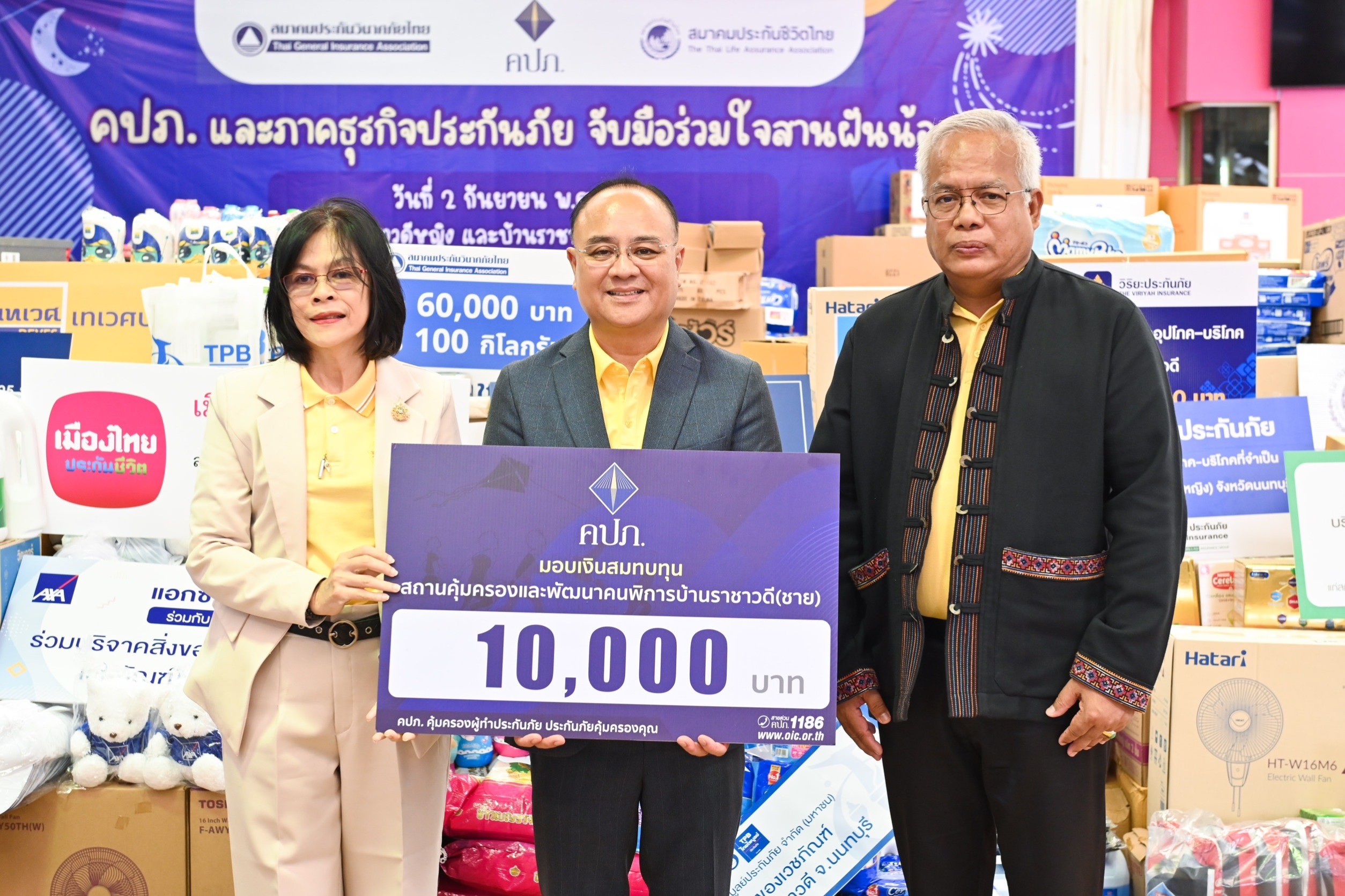 “คปภ. และภาคธุรกิจประกันภัย จับมือร่วมใจกันสานฝันน้อง” โดยร่วมกันบริจาคเงินกว่า 1 ล้านบาท พร้อมสิ่งของอุปโภคบริโภค และหมวกกันน็อค ให้แก่น้อง ๆ ที่อยู่ในความดูแลของบ้านราชาวดี (หญิง) และ บ้านราชาวดี (ชาย) อำเภอปากเกร็ด จังหวัดนนทบุรี โดยมีนายพิสิฐ พูลพิพัฒน์ รองอธิบดีกรมส่งเสริมและพัฒนาคุณภาพชีวิตคนพิการ ร่วมด้วย