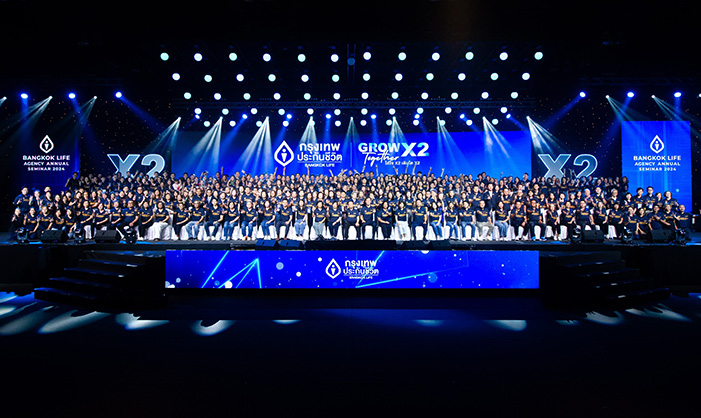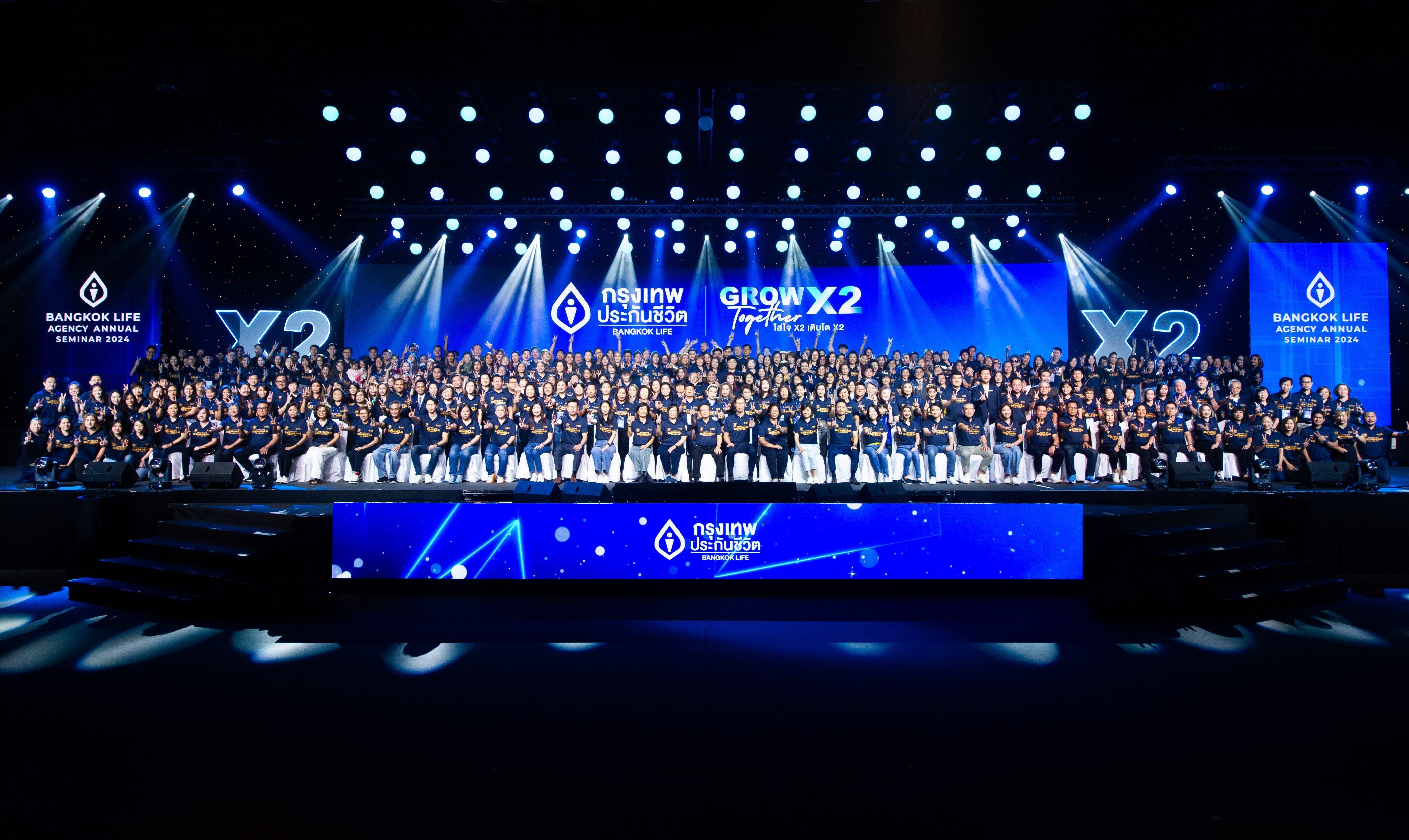 กรุงเทพประกันชีวิต จัดงานสัมมนาใหญ่ฝ่ายขายประจำปี 2567 “Bangkok Life Agency Annual Seminar 2024” ภายใต้แนวคิด Grow X2 Together ใส่ใจ X2 เติบโต X2 “เพราะทุกสิ่งที่ทำด้วยใจ อะไรก็ทำได้” เพื่อประกาศ ทิศทางและนโยบายสนับสนุน “ใส่ใจ 2 เท่า เติบโต 2 เท่าโดยมีสุดยอดนักขาย กรุงเทพประกันชีวิตที่มีผลงานยอดเยี่ยม และมีความมุ่งมั่นทุ่มเทในการทำงานร่วมรับฟัง พร้อมด้วยตัวแทนและที่ปรึกษาทางการเงินเข้าร่วมงานกว่า 1,300 คนเพื่อเพิ่มพูนทักษะความรู้ในการทำงานจากวิทยากรชั้นนำ โดยมี ดร.ศิริ การเจริญดี ประธานกรรมการ นายโชน โสภณพนิช กรรมการผู้จัดการใหญ่และประธานเจ้าหน้าที่บริหาร นาย จักรพงศ์ แสงแก้ว ผู้บริหารสายงานตัวแทนและที่ปรึกษาทางการเงิน กรรมการ และ คณะผู้บริหารระดับสูง ร่วมพิธีเปิด ณ โรงแรม รอยัล คลิฟ พัทยา